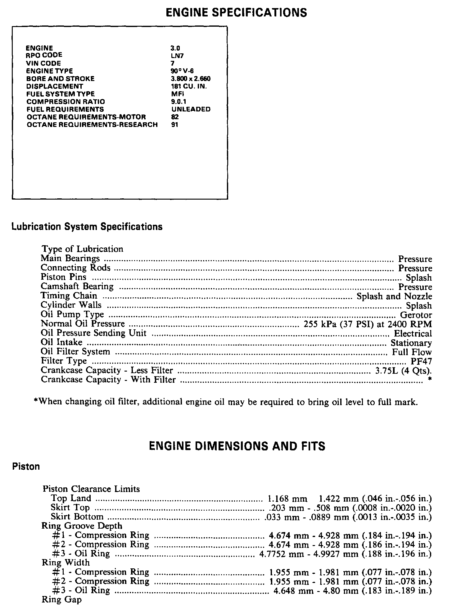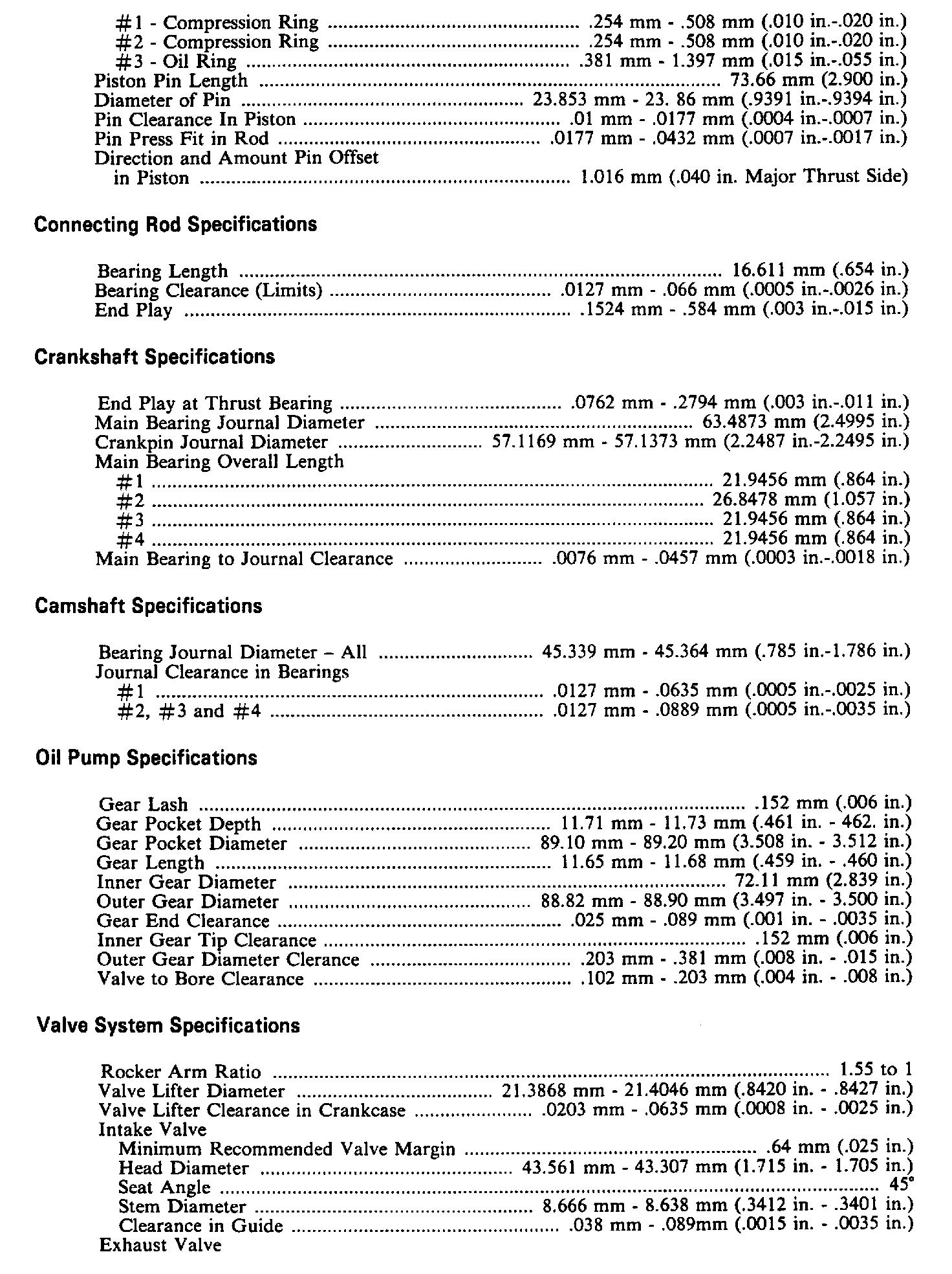 Continued Engine Specifications:
