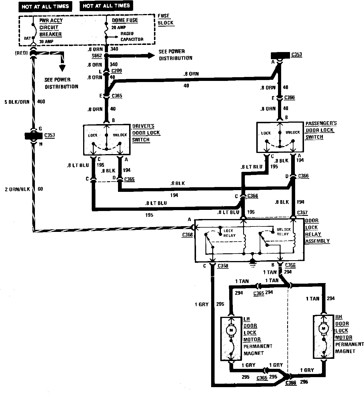 Power Door Lock Wiring Circuit (Two Door):