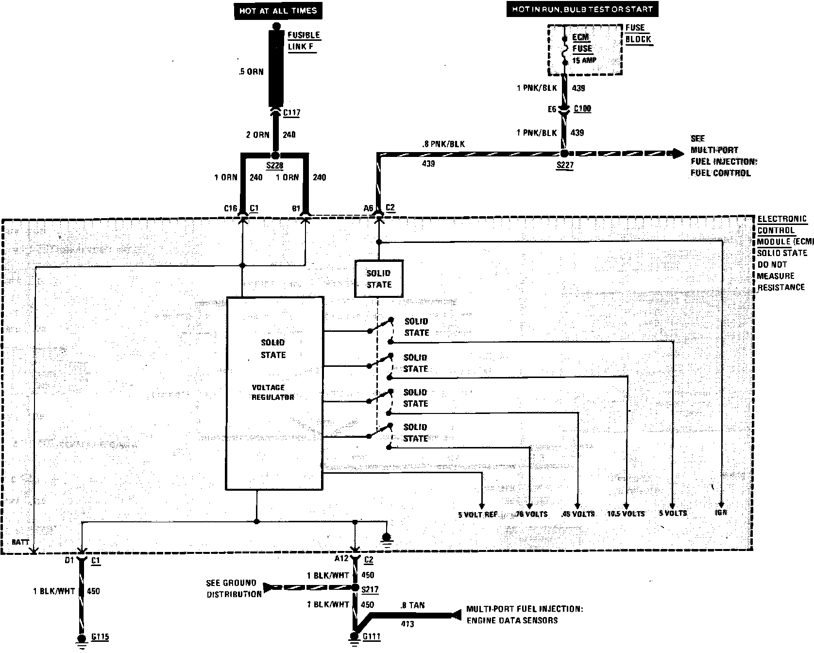 Throttle Body Injection Wiring Circuit (ECM Ground & Power):