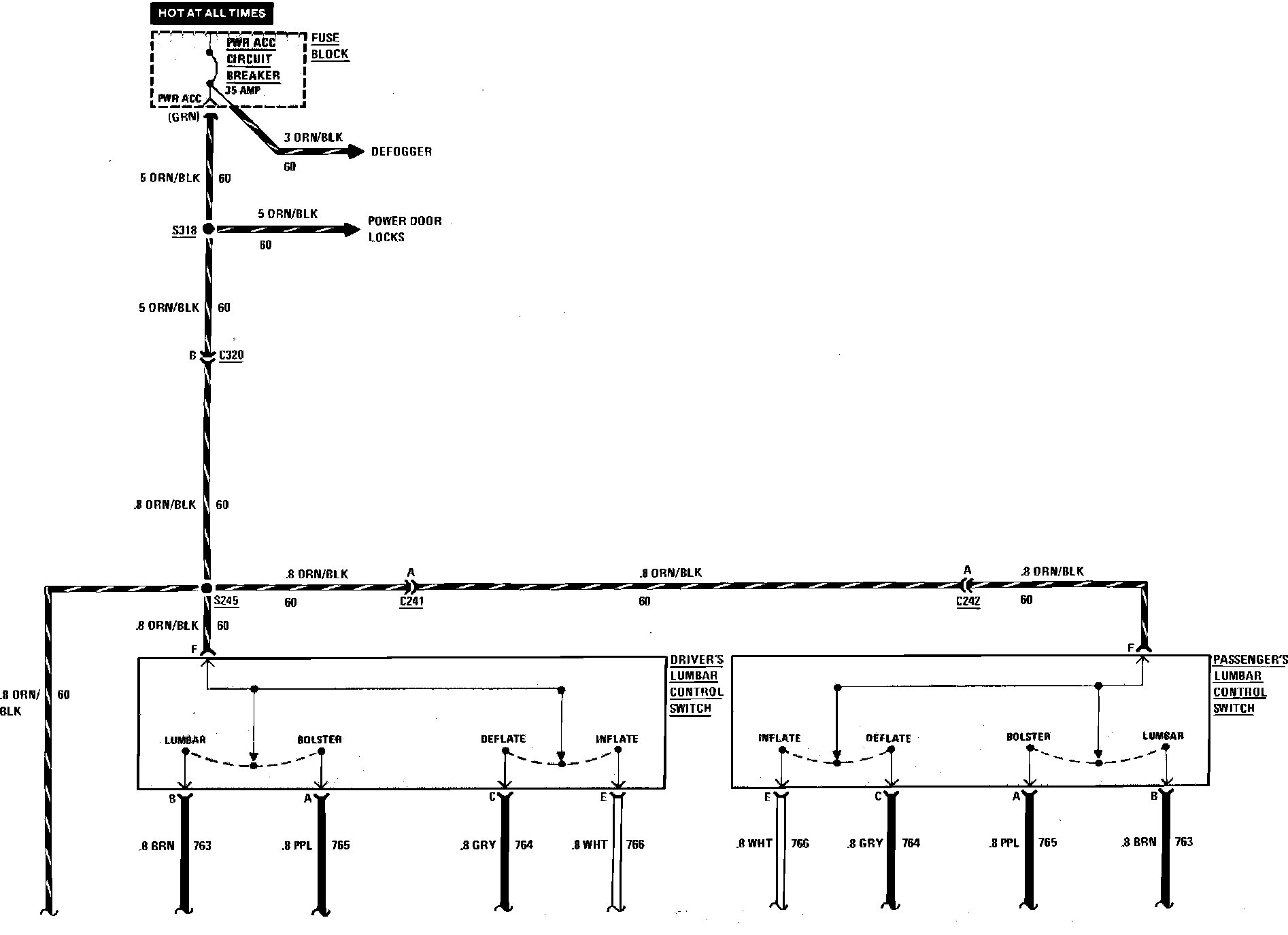 Fig. 288 Seat Support (Bolster & Lumbar) Wiring Circuit (Part 1 Of 2):
