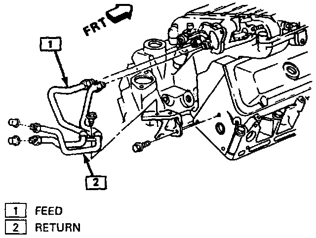 22. Fuel inlet and return pipes at fuel rail.