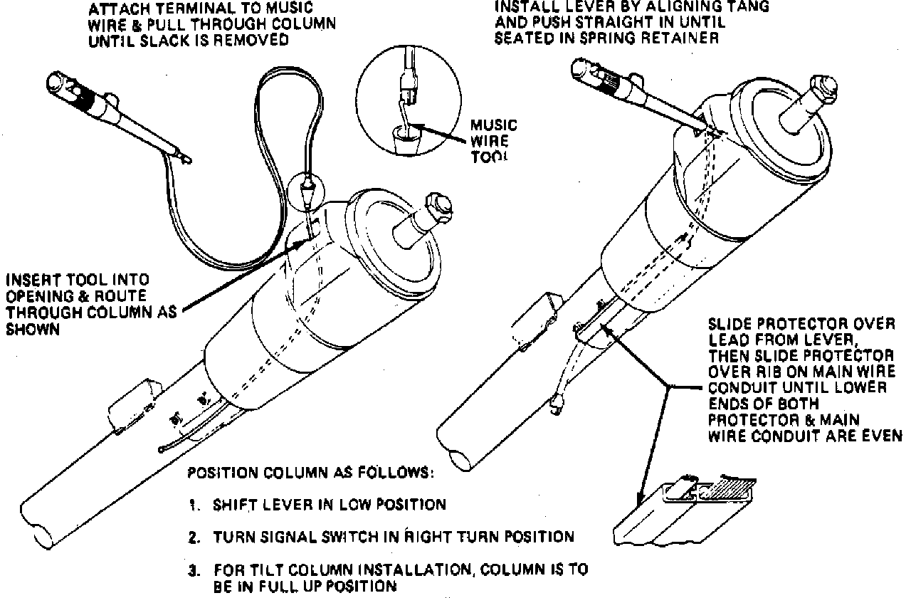 3. Disconnect wire from switch harness and reconnect harness. Reinstall protective plastic around wires and column.