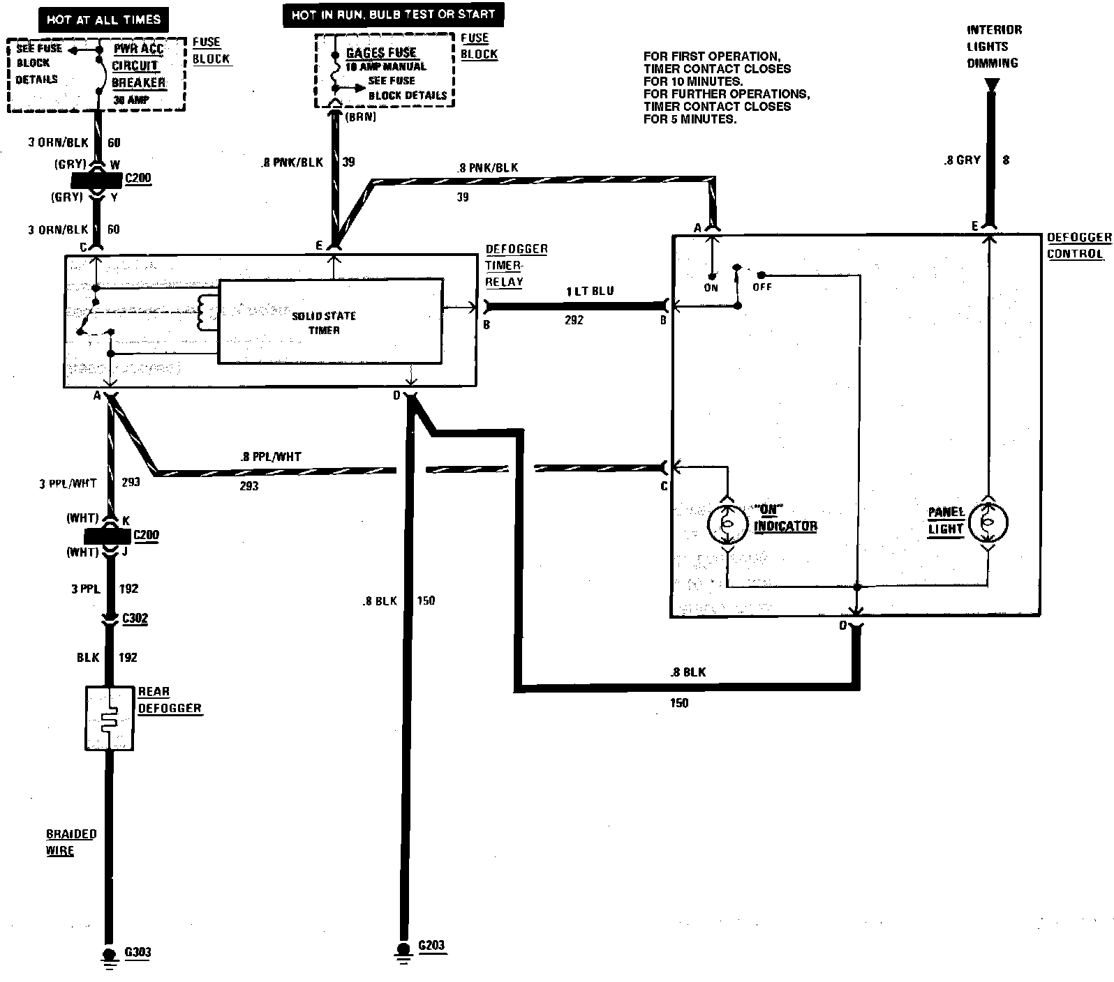 Rear Defogger Wiring Circuit: