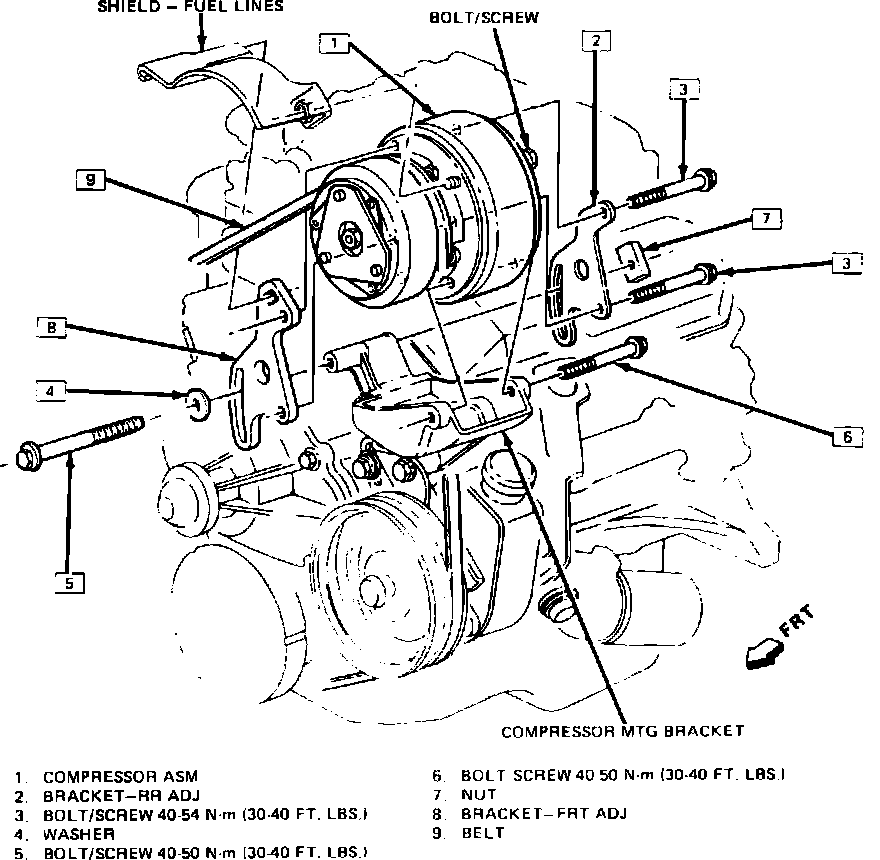 Fig. 2 Compressor mounting. Camaro & Firebird w/V6-173 engine (Typical):