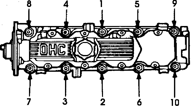 Fig. 7 Cylinder Head & Camshaft Carrier Bolt Tightening Sequence: