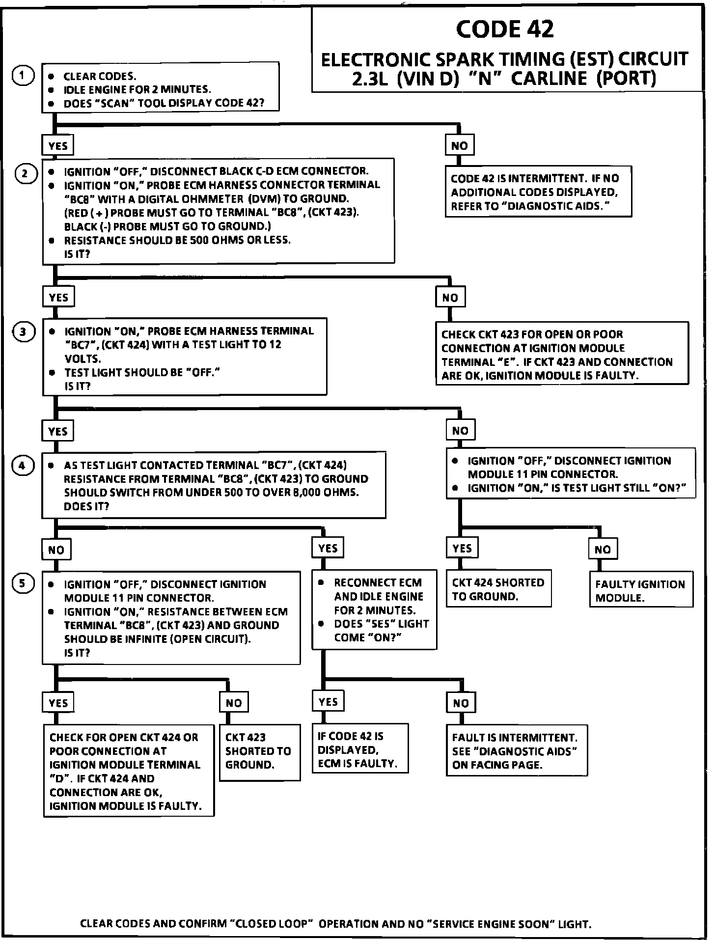 This Chart replaces the Code 42 Chart found in Section 6E "Driveability and Emissions" in the Service Manual for the 1988 (VIN D) Grand Am engine applications.