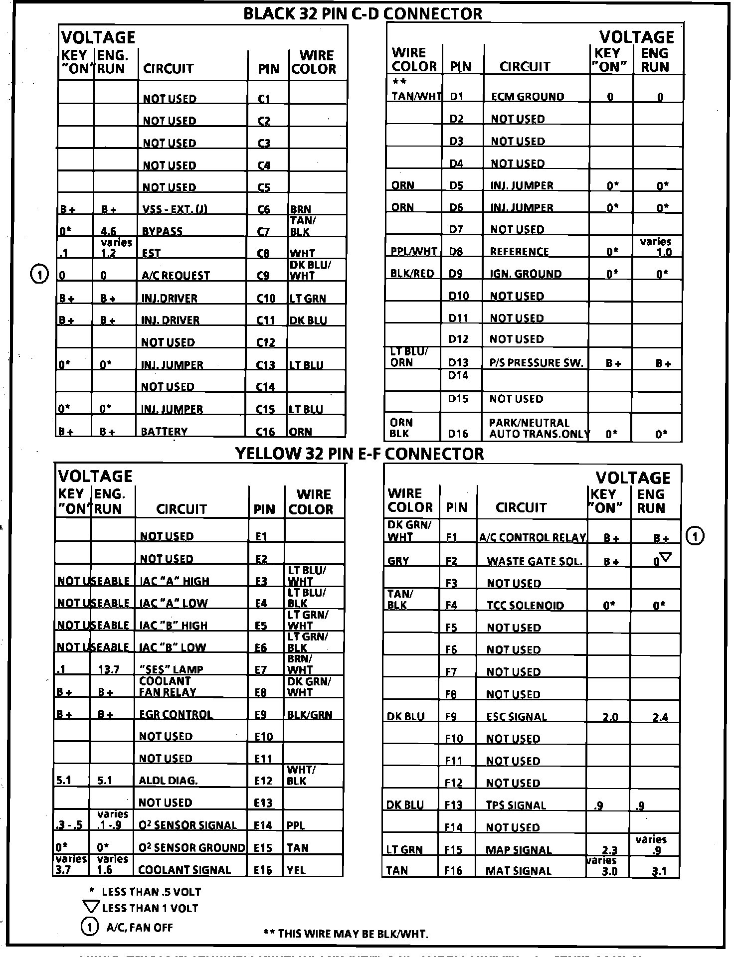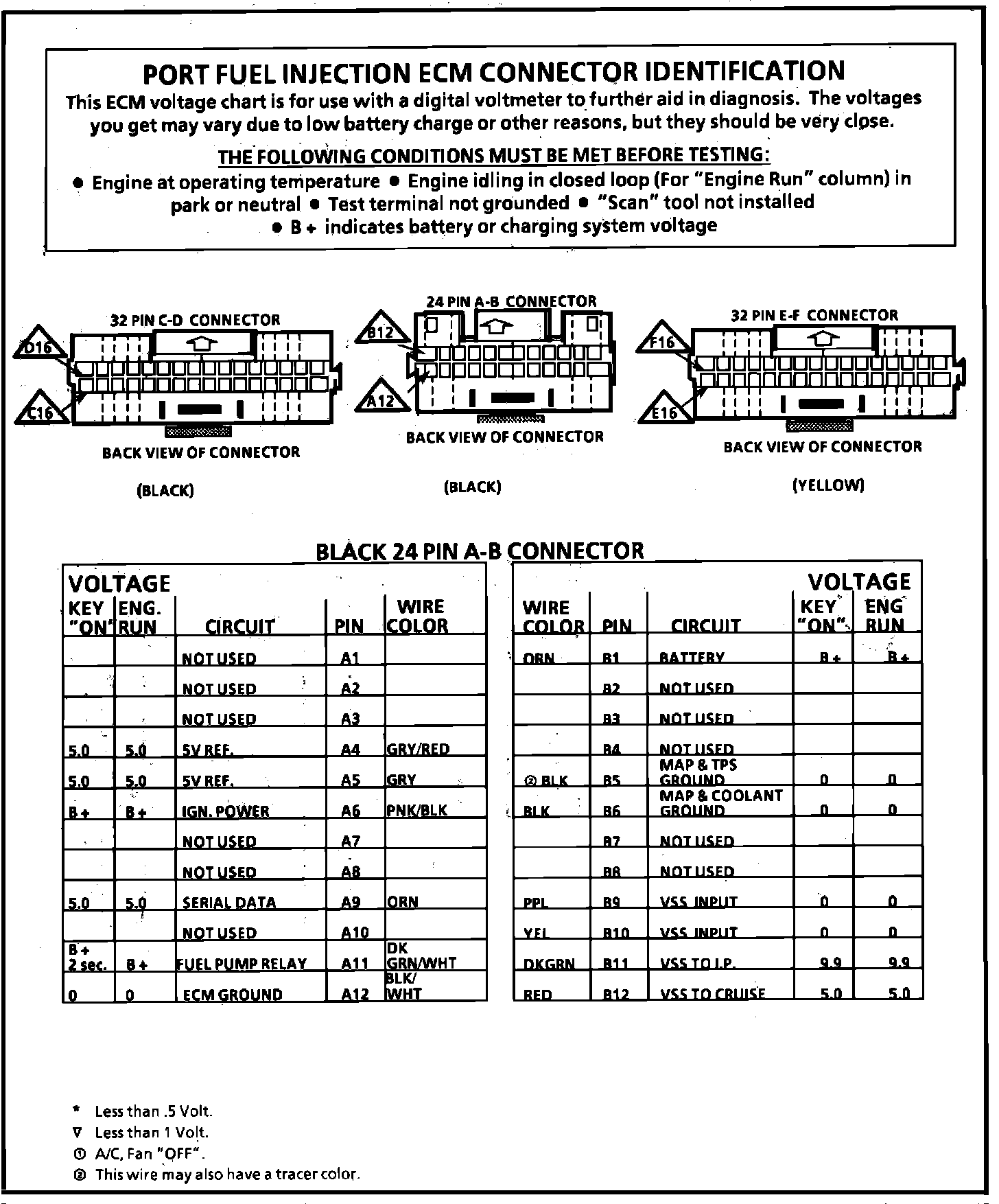 ECM Terminal ID and Voltage Specifications (Part 1 of 2):