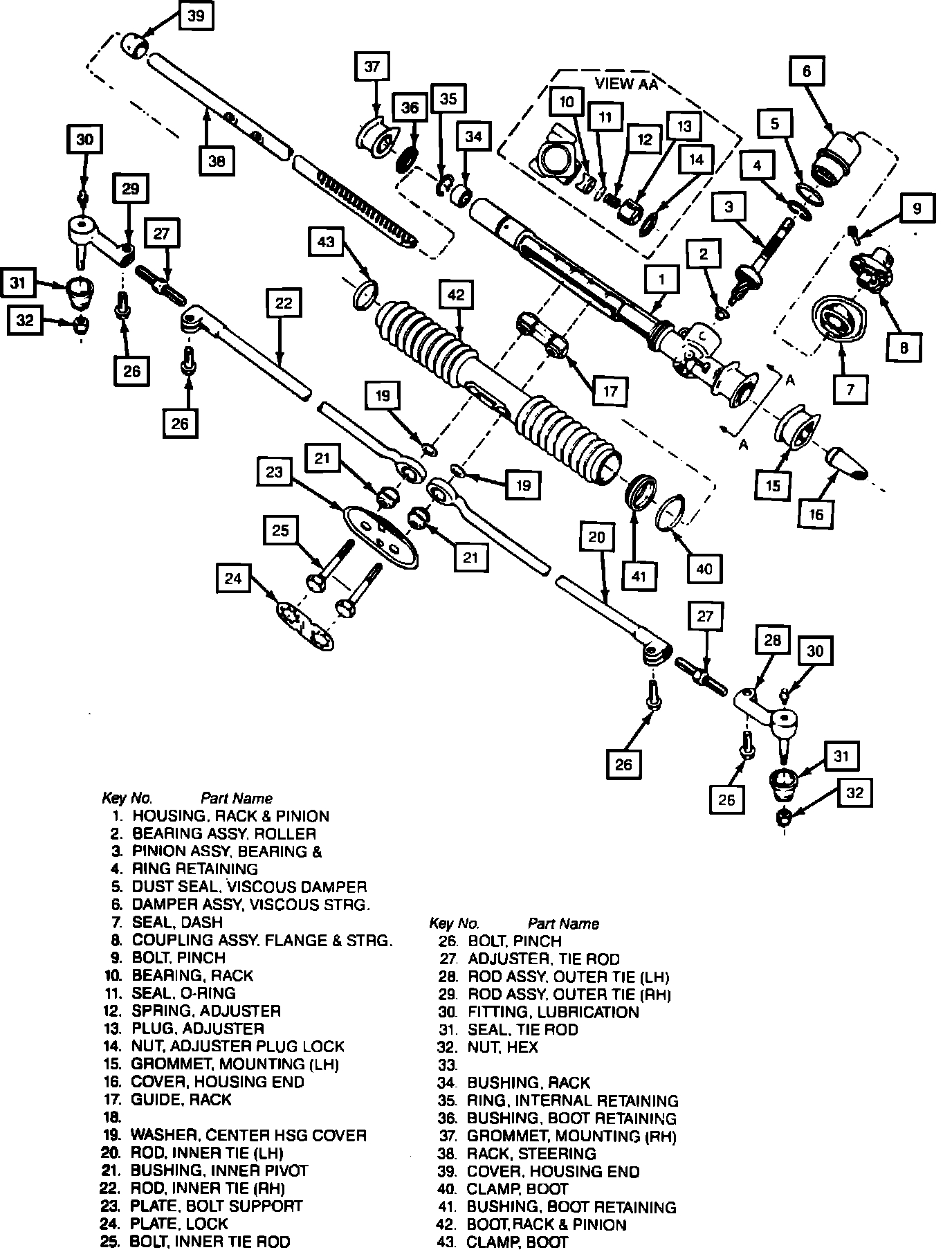 Fig. 1 Exploded view of manual rack & pinion steering gear: