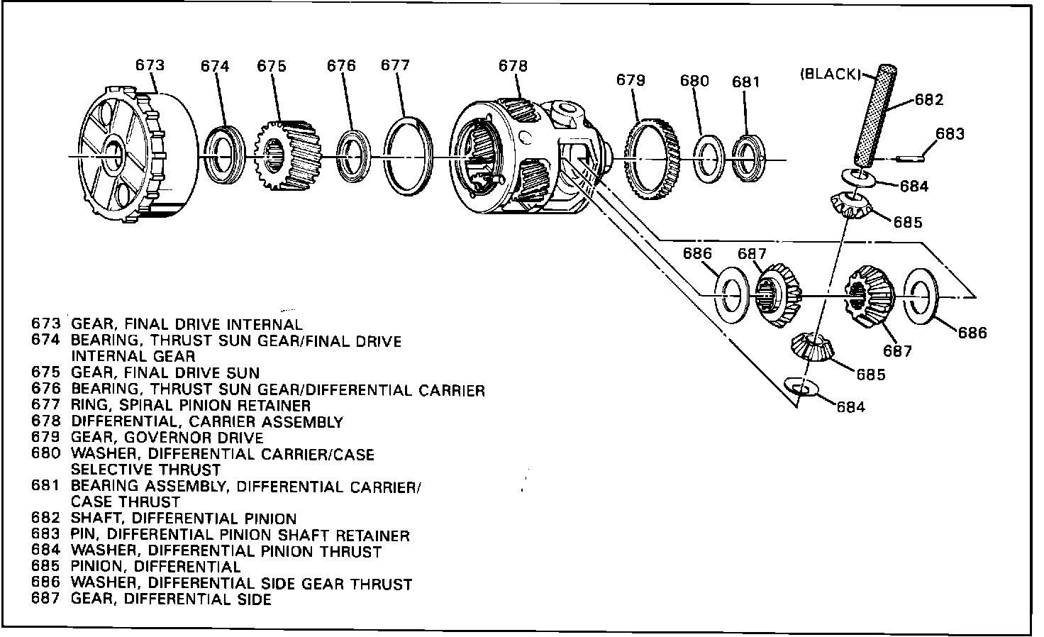 1. The Differential Pinion Shaft (682) is smaller in diameter and black in color (normally silver)
