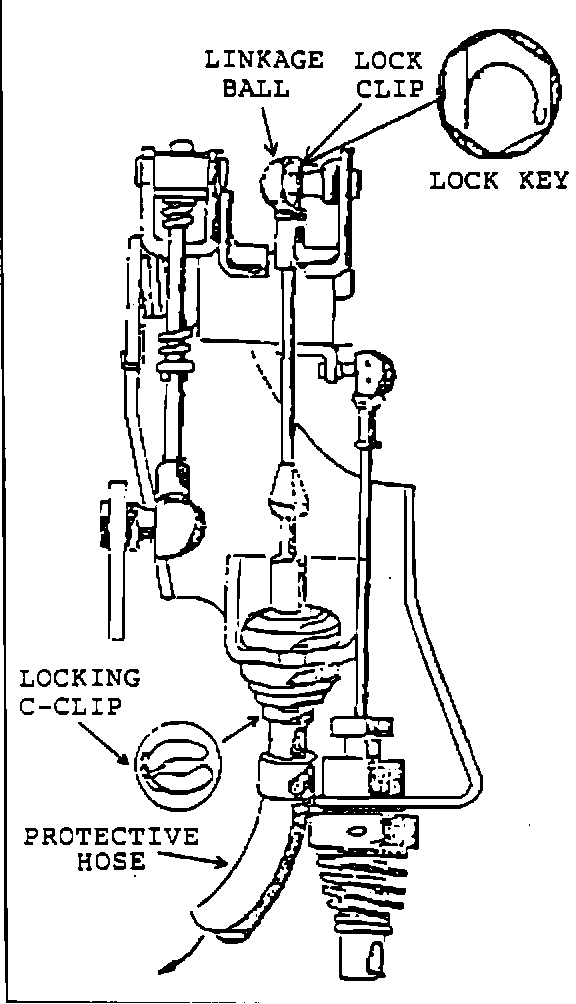 6. Pull cable assembly protective hose rearward and note position of locking C-clip (see Figures 2 and 3).