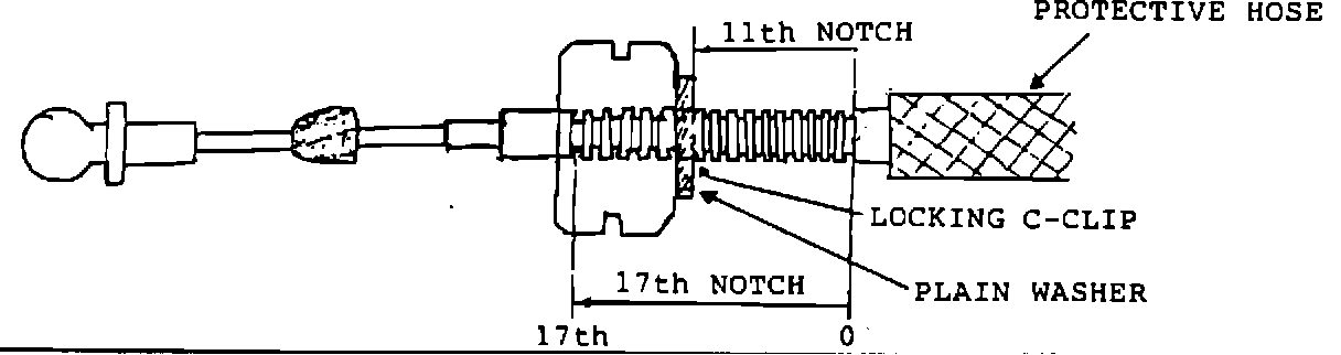 10. If cable feels over tensioned, remove locking C-clip and install at the 9th or 10th notch. If cable feels under tensioned, insert locking washer at the 12 or 13 notch.