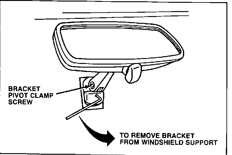 1. Remove mirror bracket from mirror support at windshield by loosening bracket attaching screw. - See Figure 1.