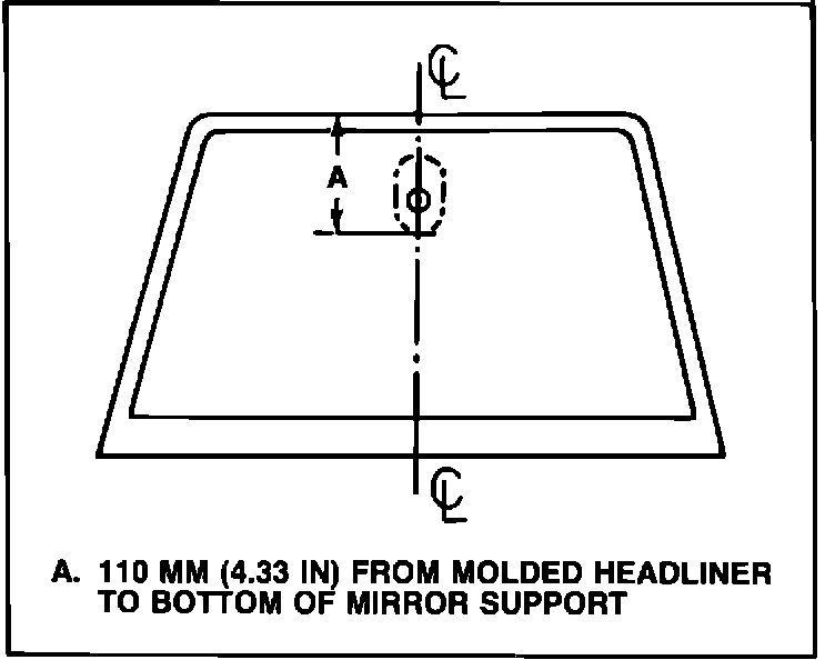 1. To determine rearview mirror support position on windshield, see Figure 2. Measure from headliner to bottom of mirror support.