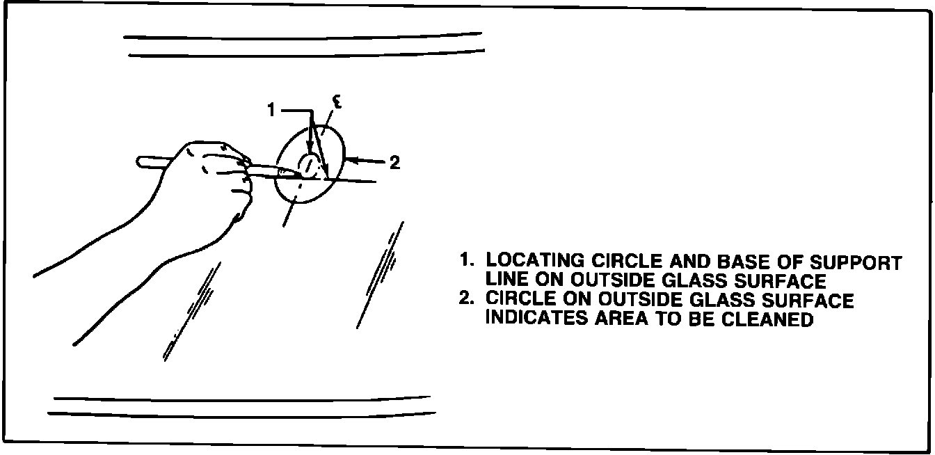 3. On inside glass surface, clean large circle with paper towel and domestic scouring cleanser, glass cleaning solution or polishing compound. Rub until area is completely clean and dry. When dry clean area with an alcohol saturated paper towel to remove any traces of scouring powder or cleaning solution from this area.