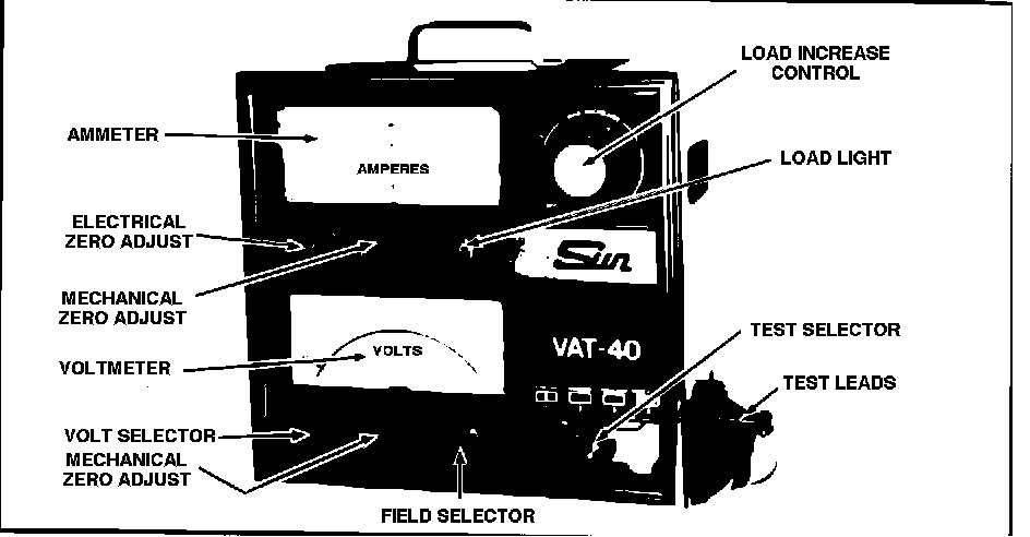 A suitable load tester such as the Sun VAT-40 shown in Fig. 5 (or equivalent) is available and is a very useful tool to properly diagnosis battery problems.