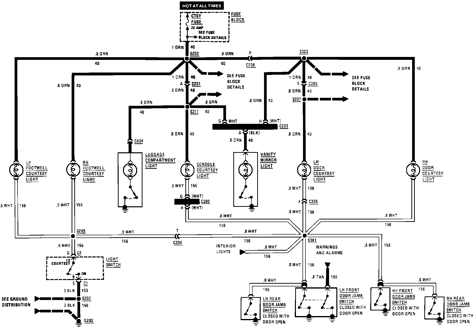 Interior Lamps (Courtesy, Luggage Compartment & Vanity Mirror):