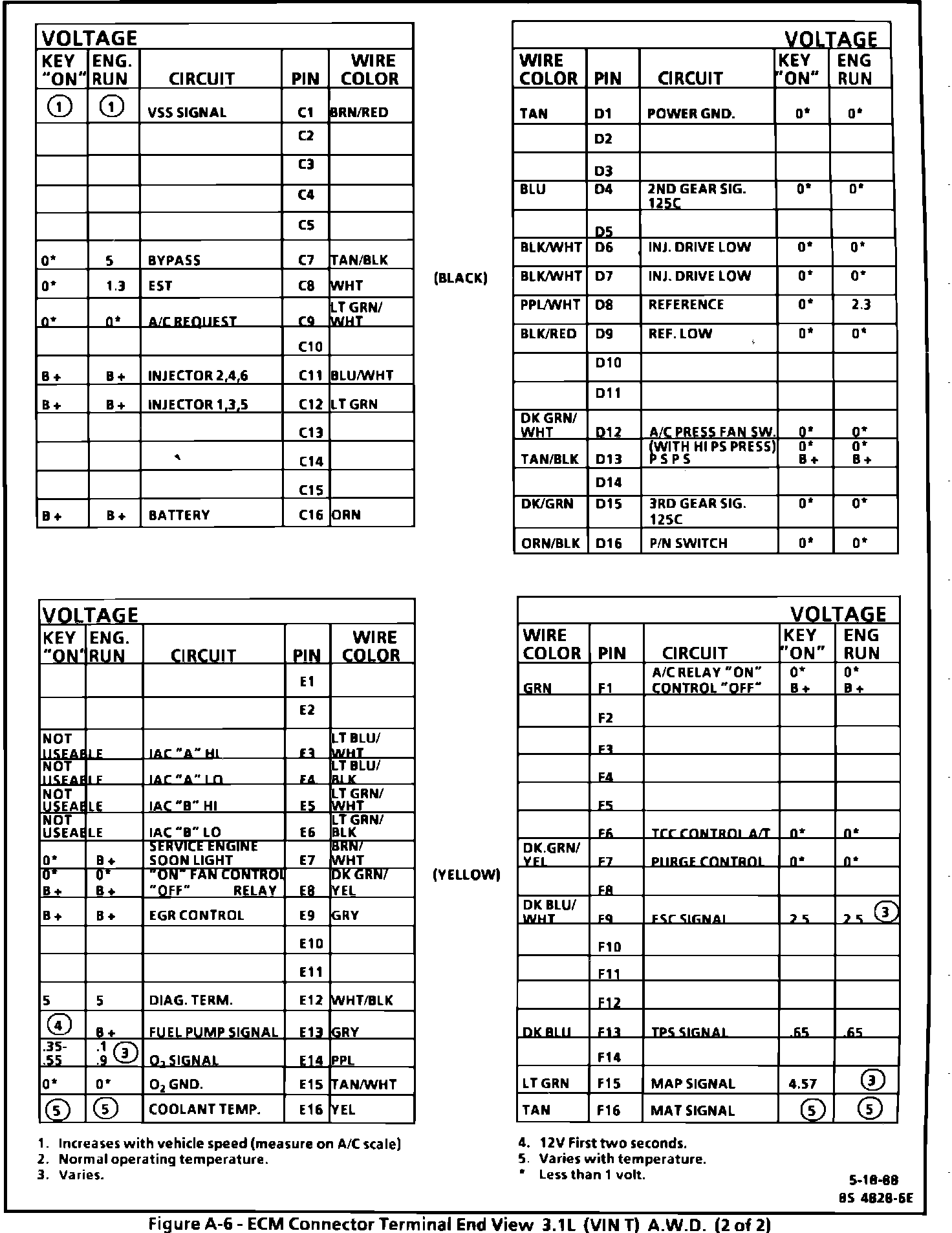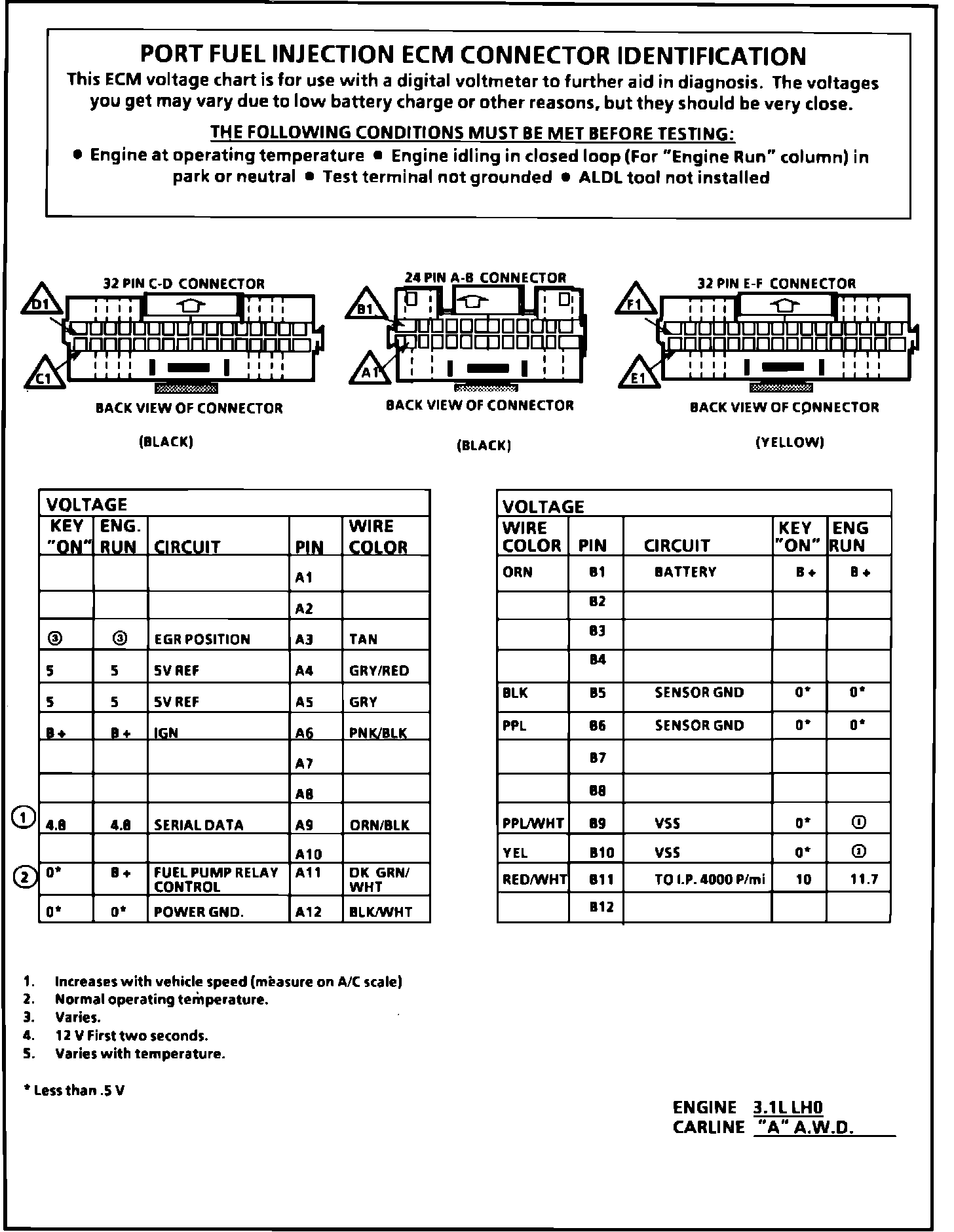 ECM Connector Terminal Identification And Voltage Specification (Part 1 Of 2):