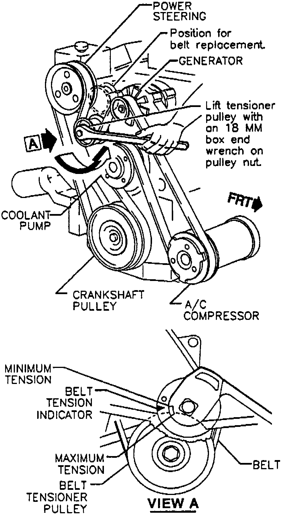1. Lift or rotate tensioner using an 18 mm box end wrench on pulley nut.