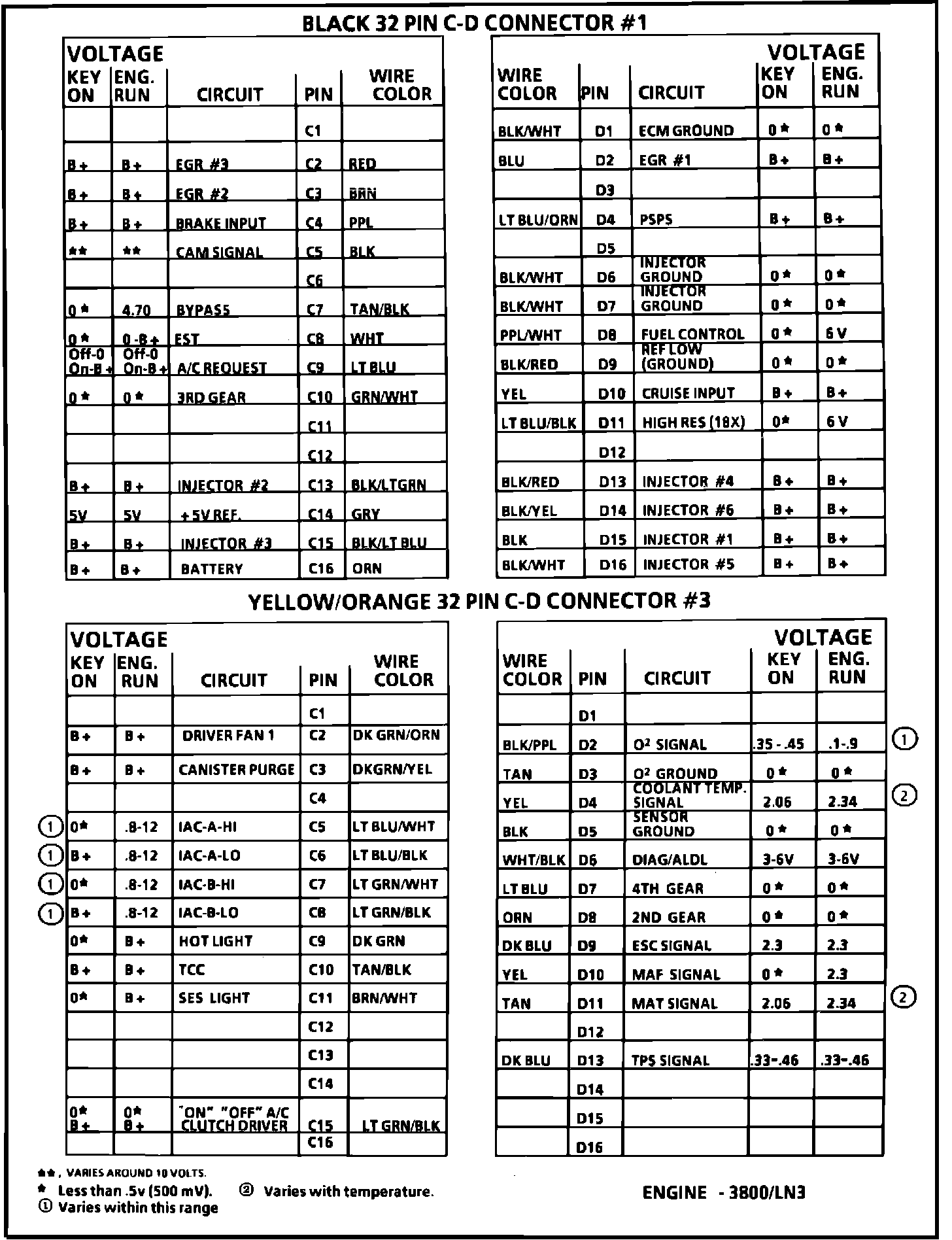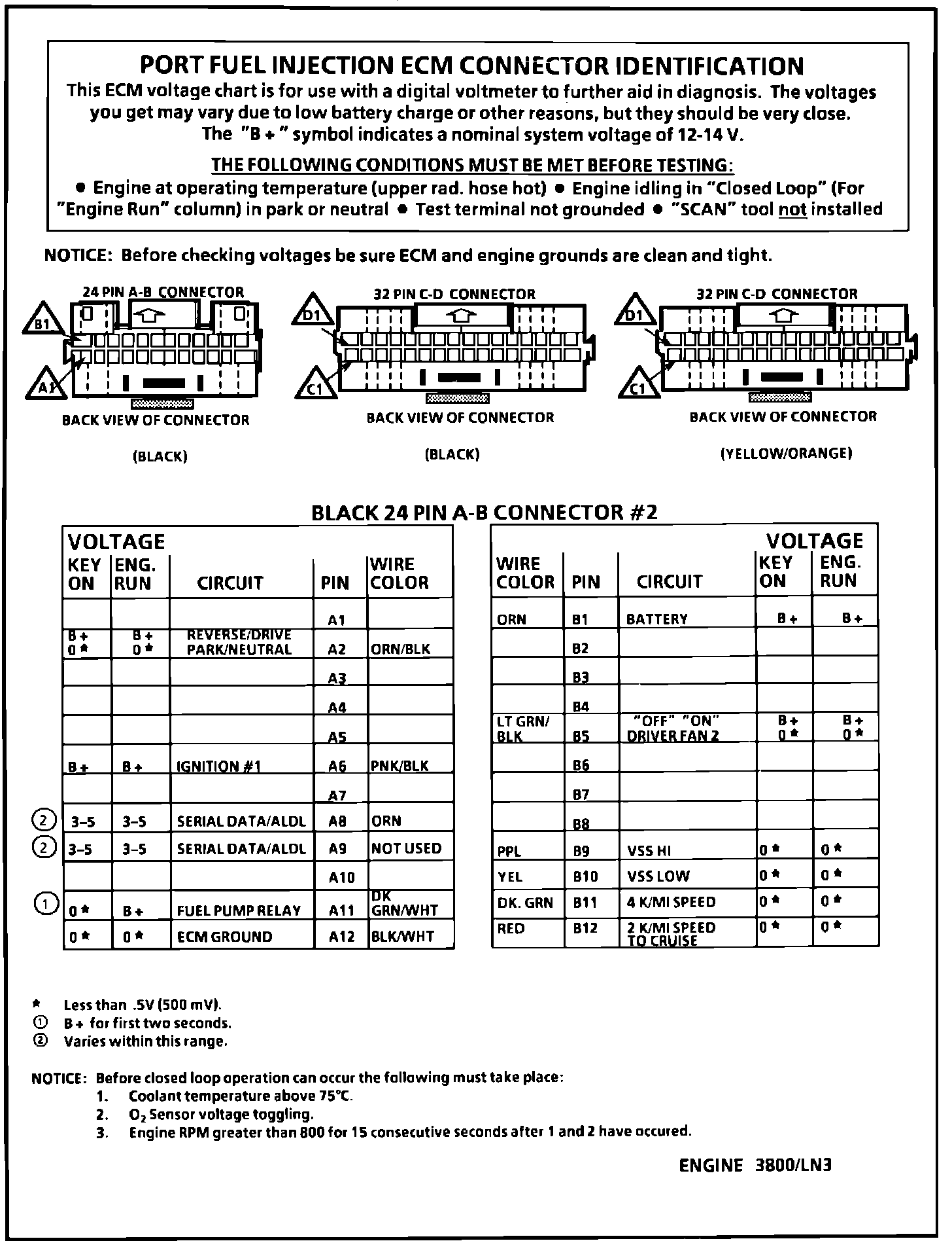 ECM Connector Terminal Identification And Voltage Specification (Part 1 Of 2):