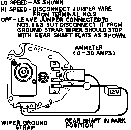 2. Grounded wire between motor terminal 3 and wiper switch.