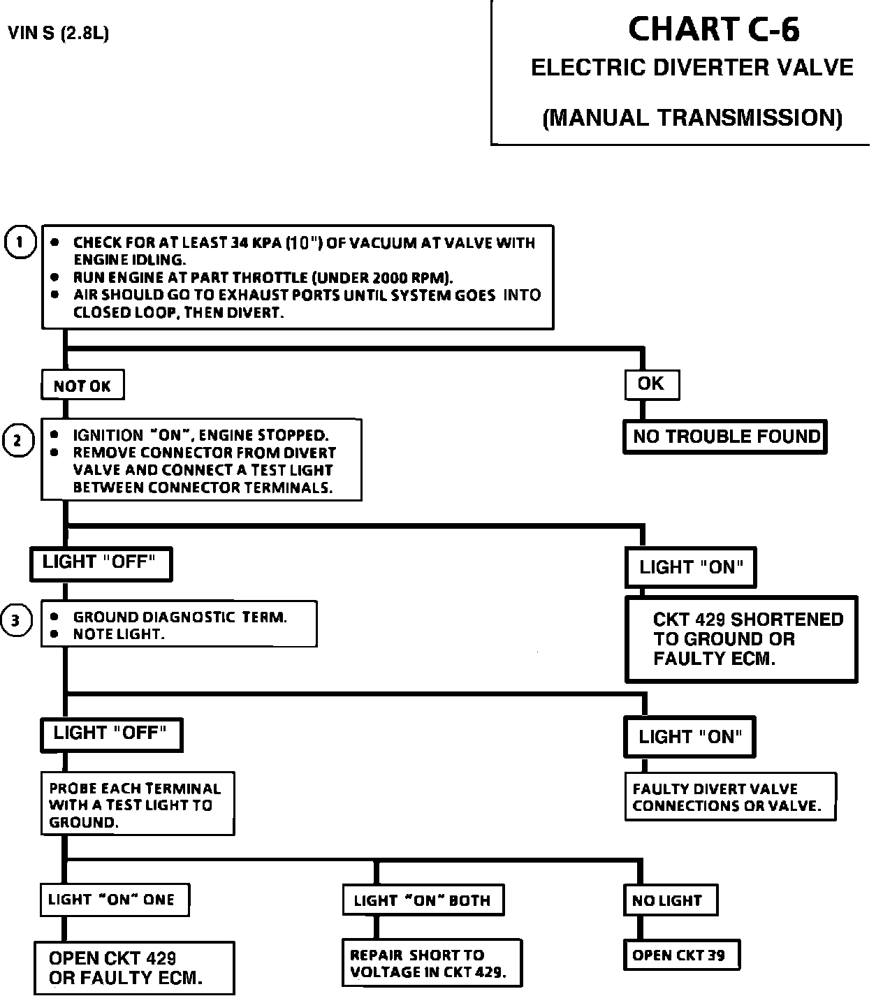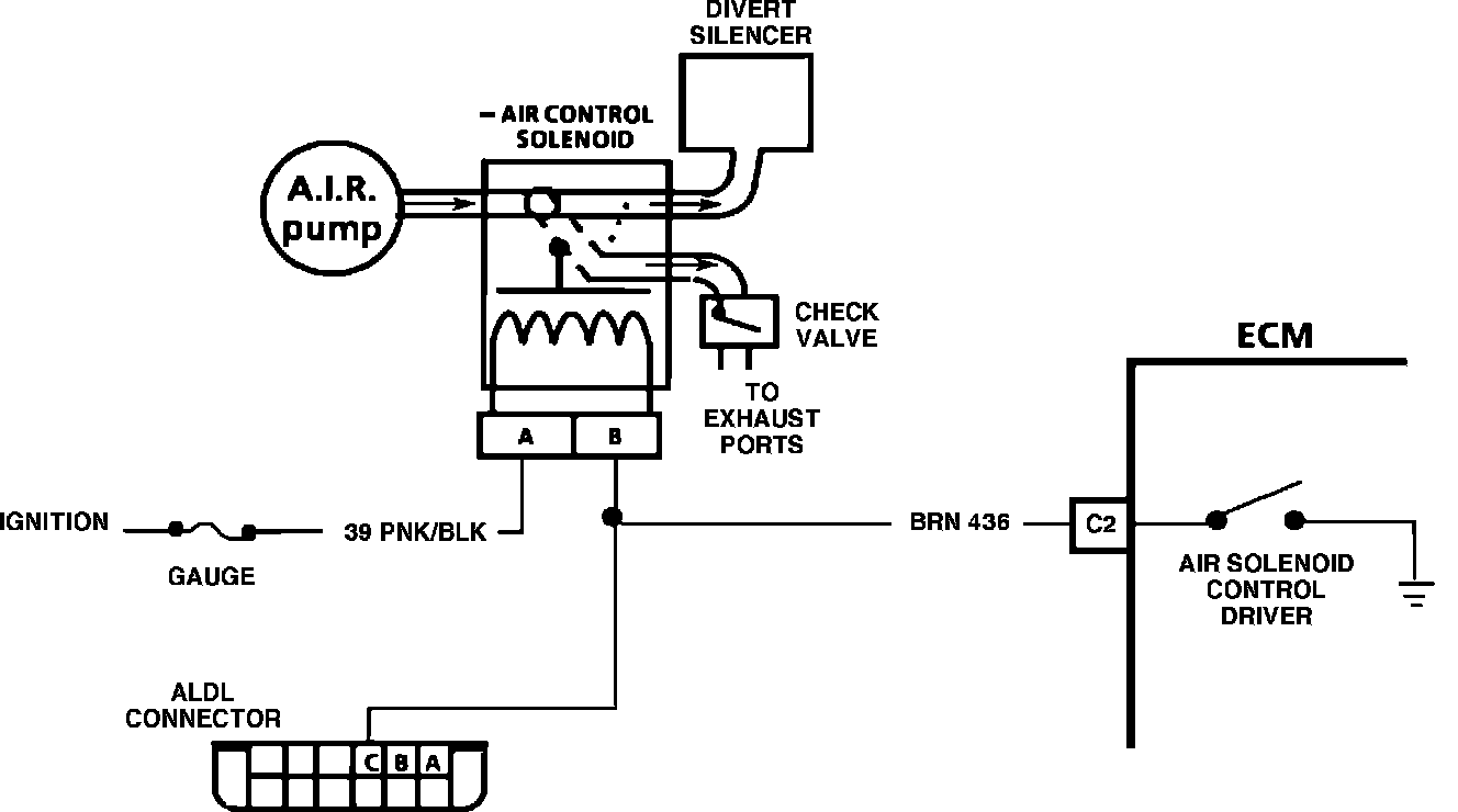 When the ECM grounds the circuit, the solenoid causes the valve to direct air to the exhaust ports. When de-energized, air diverts to the atmosphere, and air will be diverted to the ports provided that the valve has grounded at the ECM, and good manifold vacuum exists.