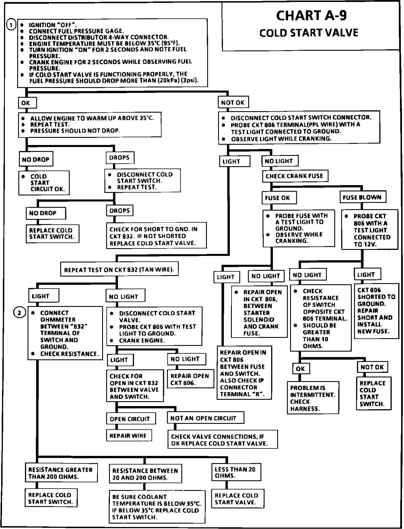 The cold start valve is used to provide additional fuel during the crank mode to improve cold start-ups. This circuit is important when engine coolant temperature is low because the other injectors are not "ON" long enough to provide the needed amount of fuel to start.