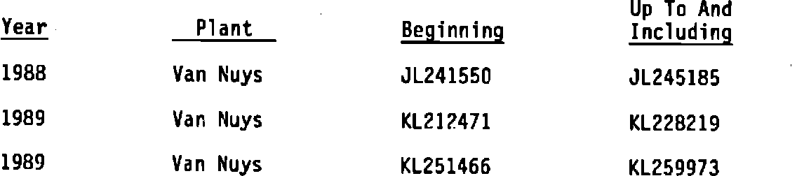 Involved are certain 1988-89 Pontiac Firebird model vehicles with 2.8L V6 engines within the following VIN breakpoints: