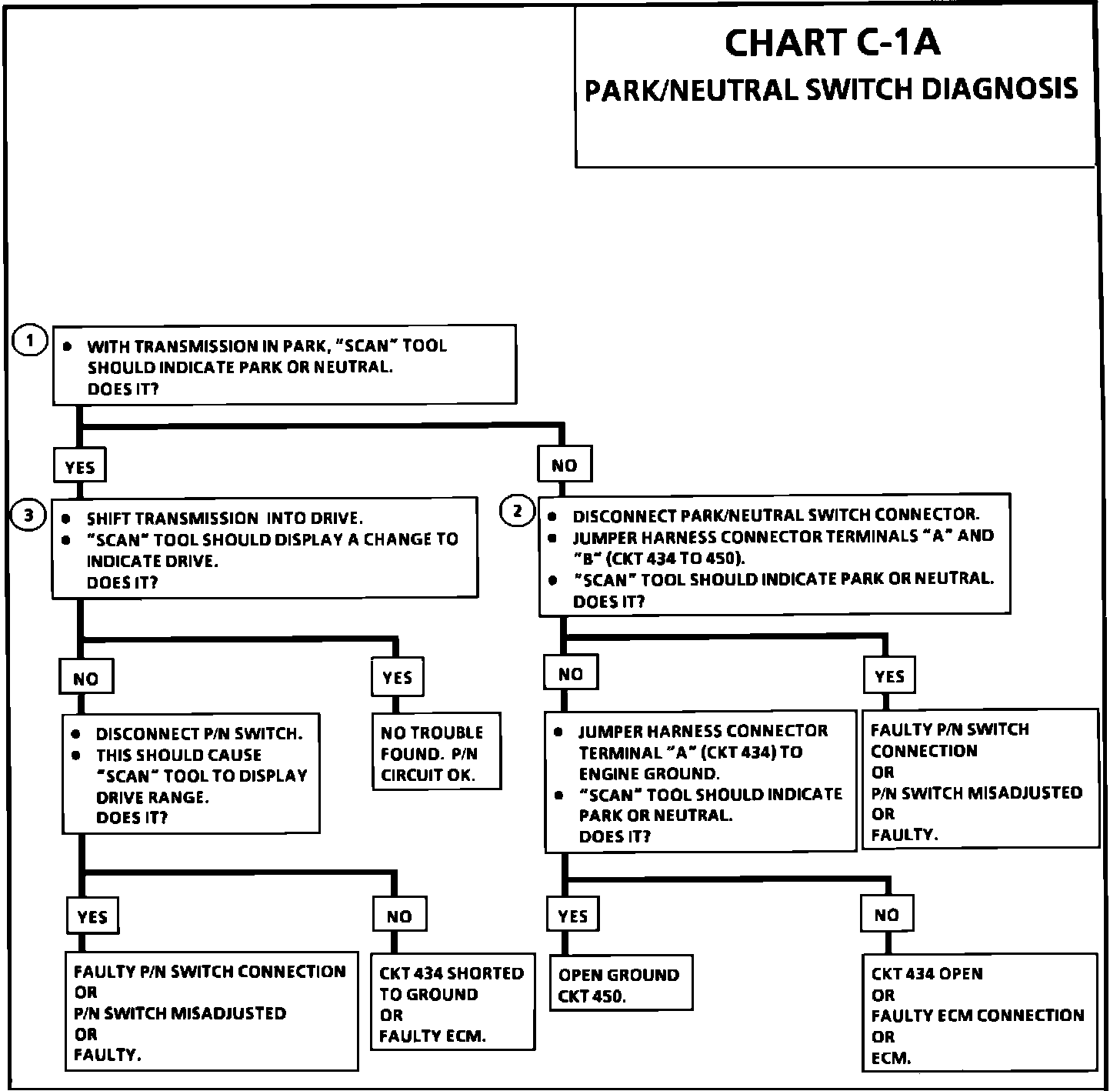 ^ If CKT 434 indicates P/N (grounded), while in drive range, the EGR would be inoperative, resulting in possible detonation.