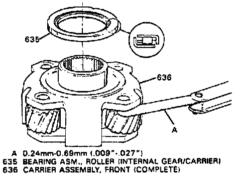 2. Check front carrier pinion endplay. Pinion endplay should measure 0.009 - 0.027 inch.