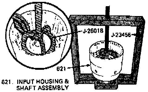9. Place input housing and shaft assembly on suitable workbench with turbine shaft through bench hole.