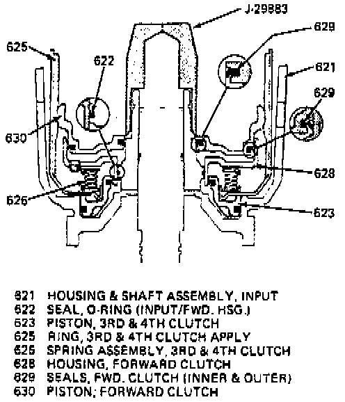 21. Install forward clutch inner seal protector tool, No. J-29883, on the input housing as shown in Fig. 48.