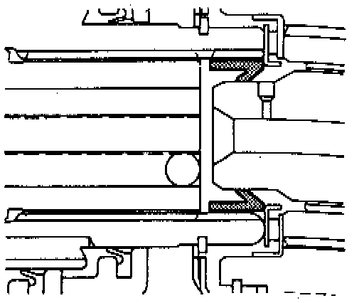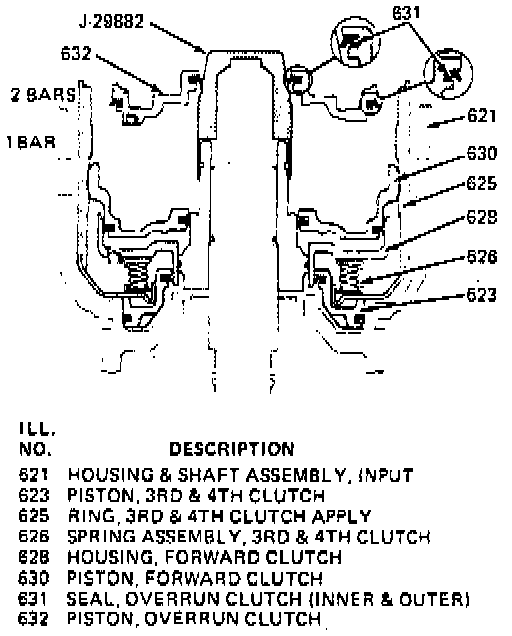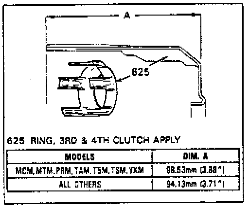 24. Install overrun clutch piston with hub facing upward. If all parts are properly seated at this point, the overrun piston hub will be approximately 3/16 inch below the snap ring groove in the input housing hub.