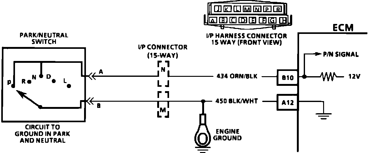 The Park/Neutral Switch contacts are closed to ground in park or neutral and open in drive ranges.