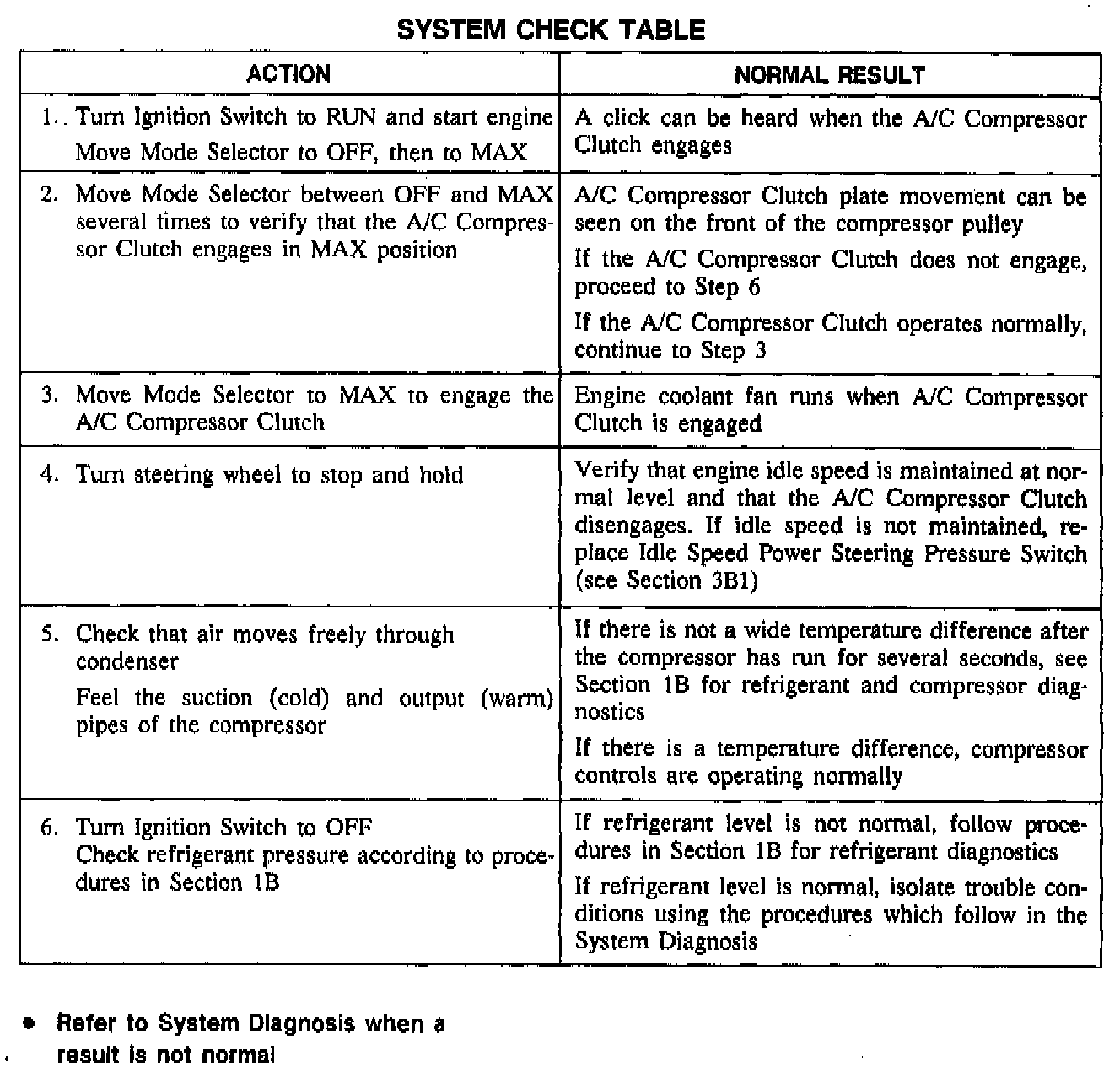 A/C Compressor Controls System Check Table: