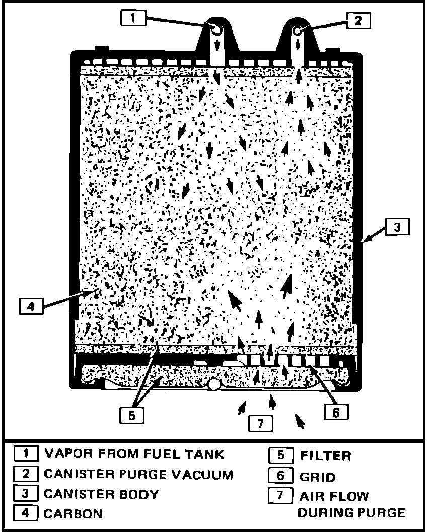 The ECM operates a solenoid valve which controls vacuum to the purge passage in the charcoal canister. Under cold or idle conditions, the solenoid is turned "ON" by the ECM which blocks vacuum to the canister purge passage.