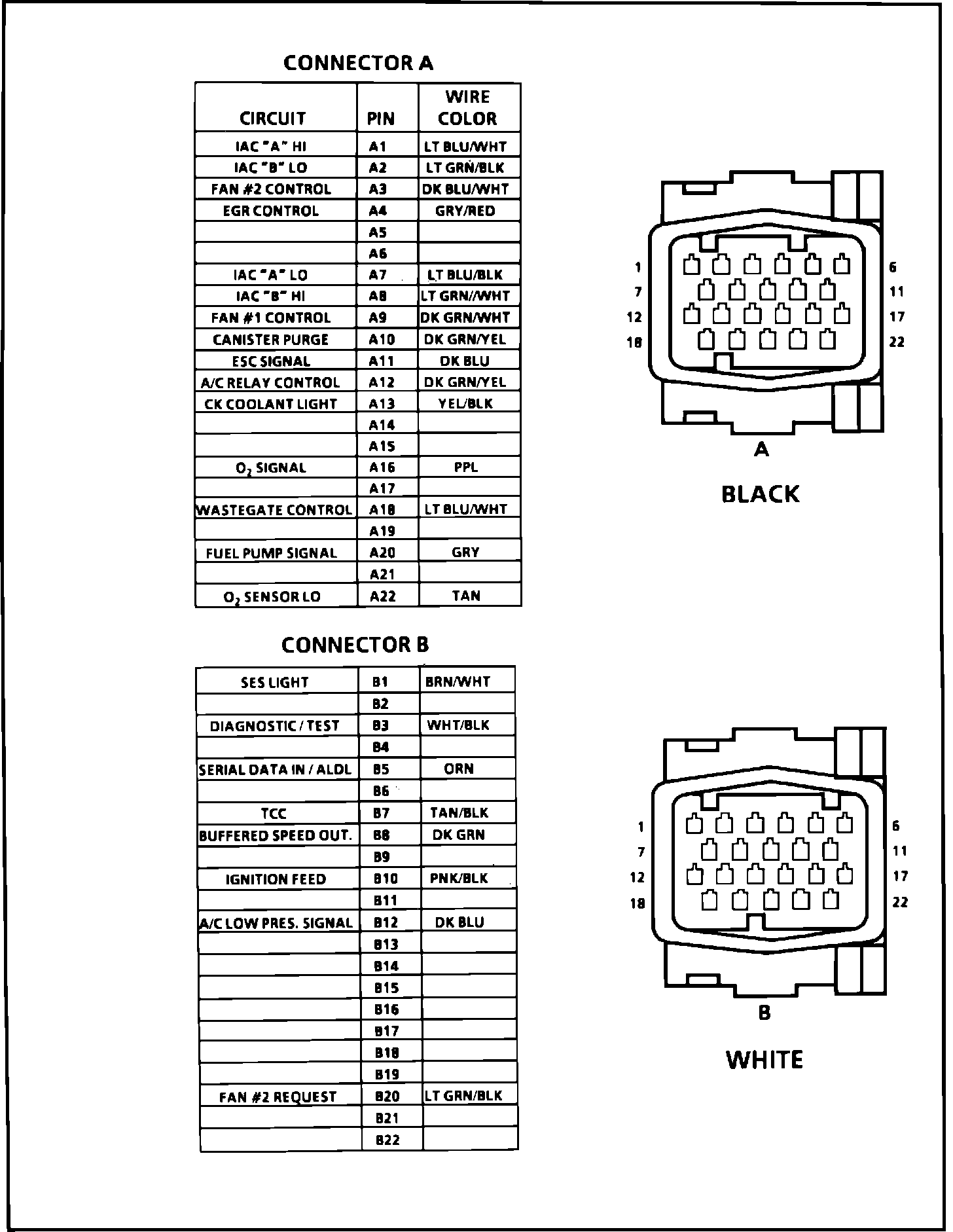 ECM Connector Terminal Identification (Part 1 Of 2):