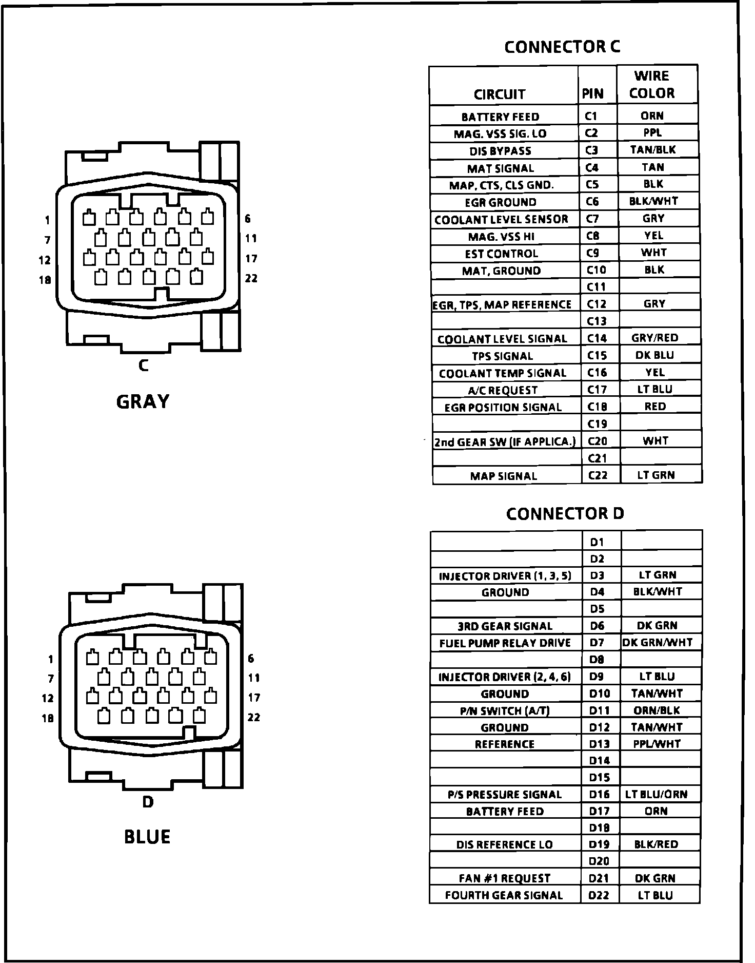 ECM Connector Terminal Identification (Part 2 Of 2):