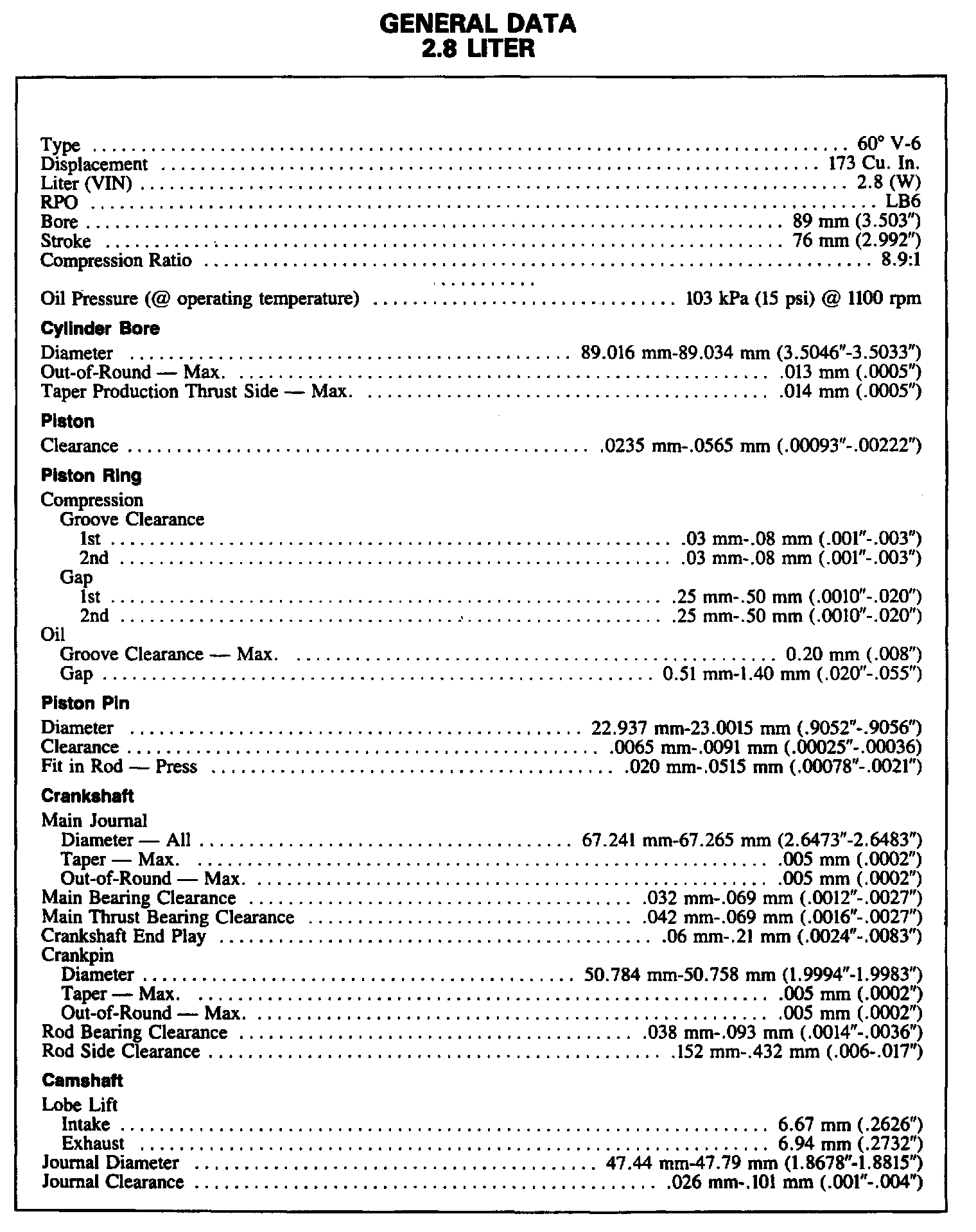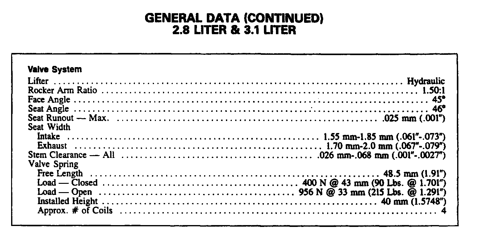 Continued Engine Specifications (2.8L/3.1L):