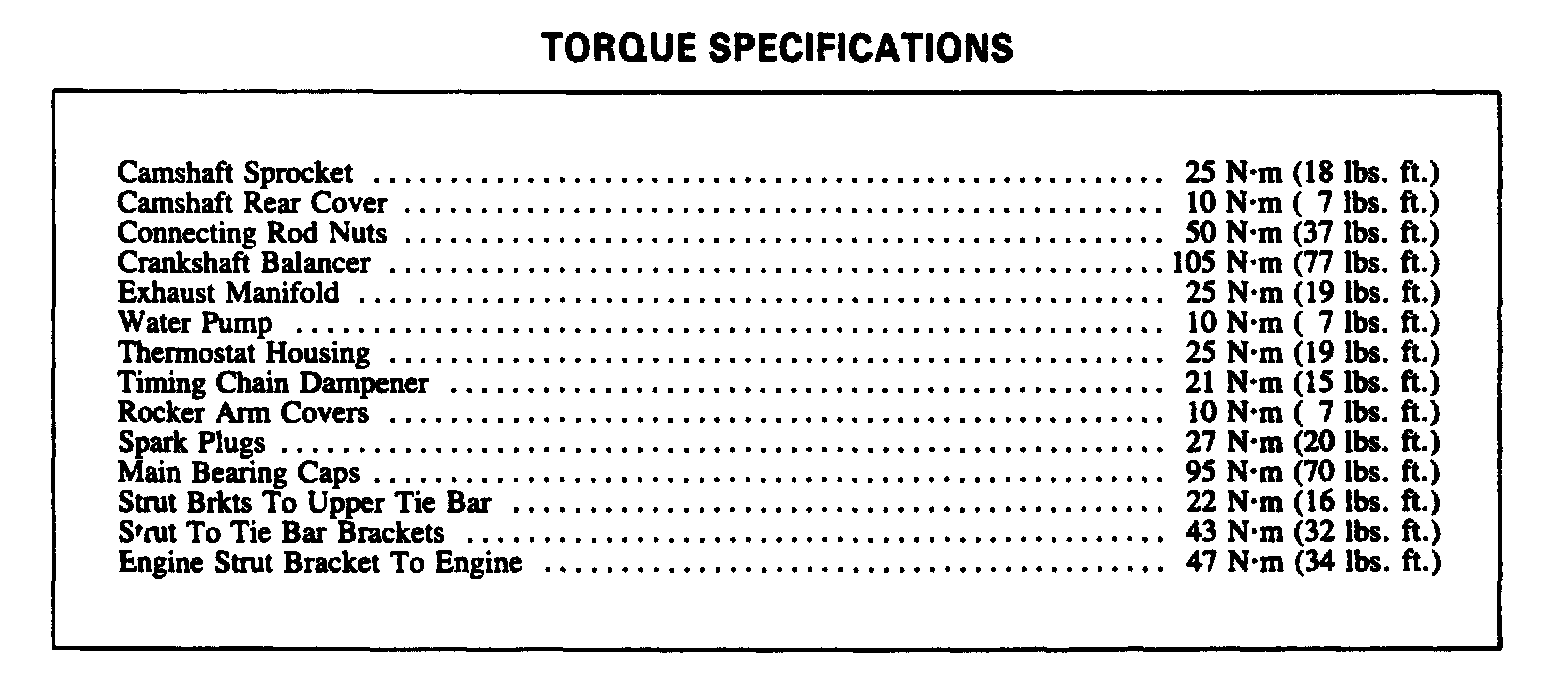 Torque Specifications: