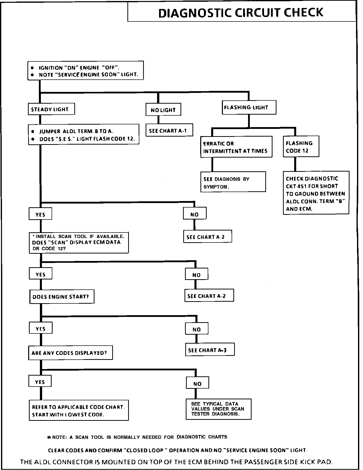1. Bulb Check - to check "SES" light circuit and that the computer can complete the circuit. The system check starts with a bulb check. If there is no "SERVICE ENGINE SOON" light, refer to CHART A-1.