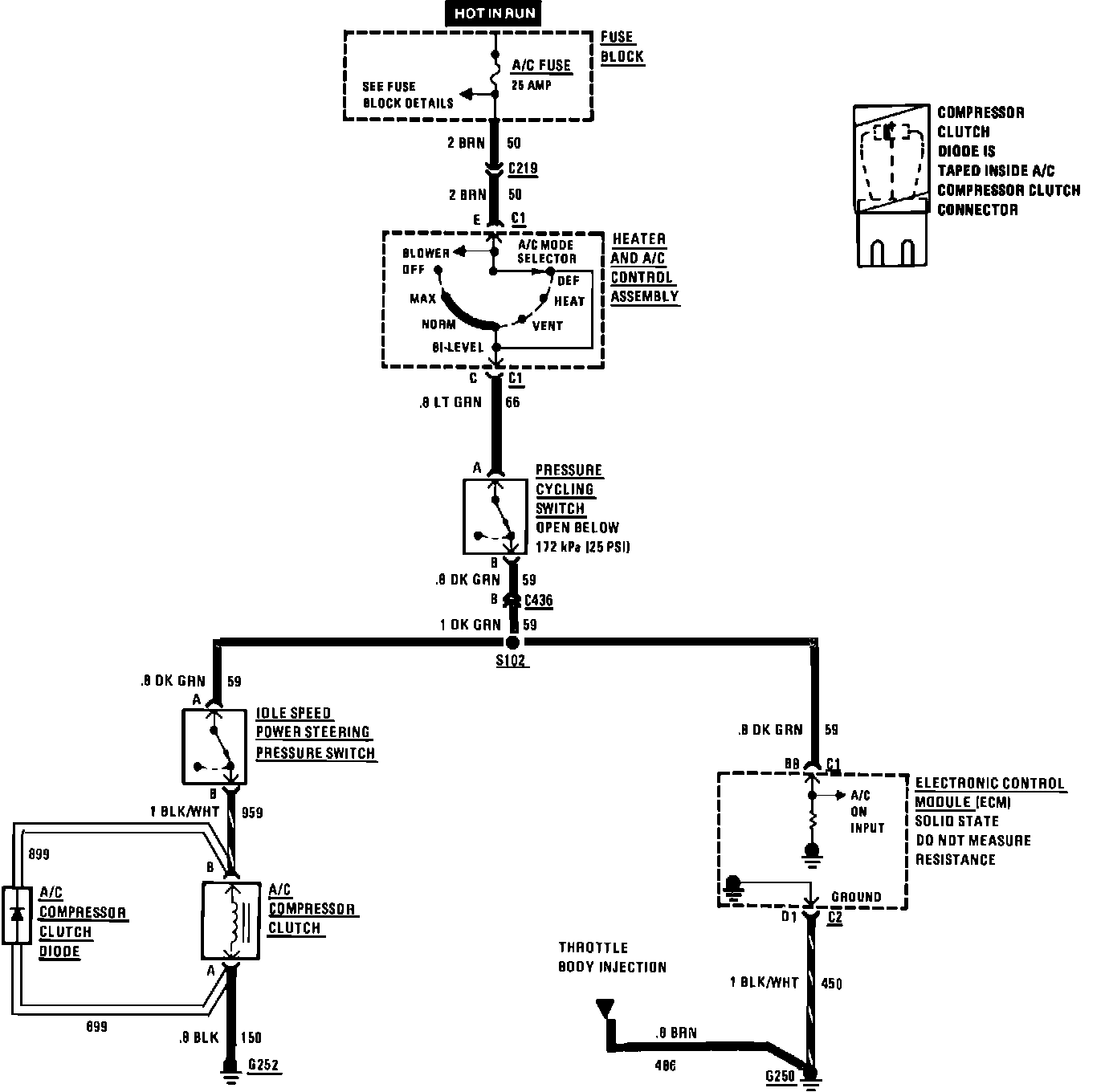 Air Conditioning Compressor Conrols (Manual, W/Fuel Injected Engines):