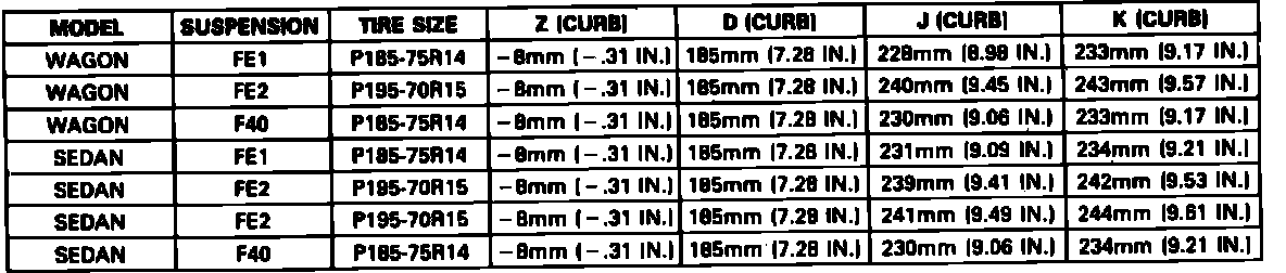 Fig. 4 Ride Height Specifications. 1989-90 6000: