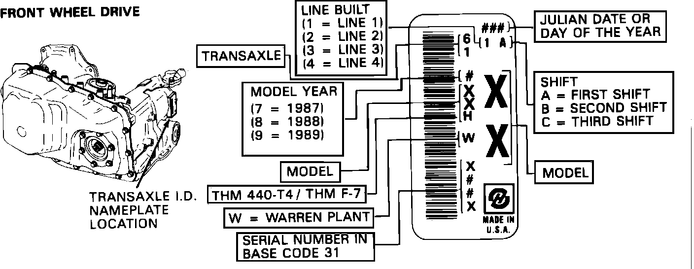 Figure 1 - THM 440-T4/THM F-7 Transaxle Identification Information:
