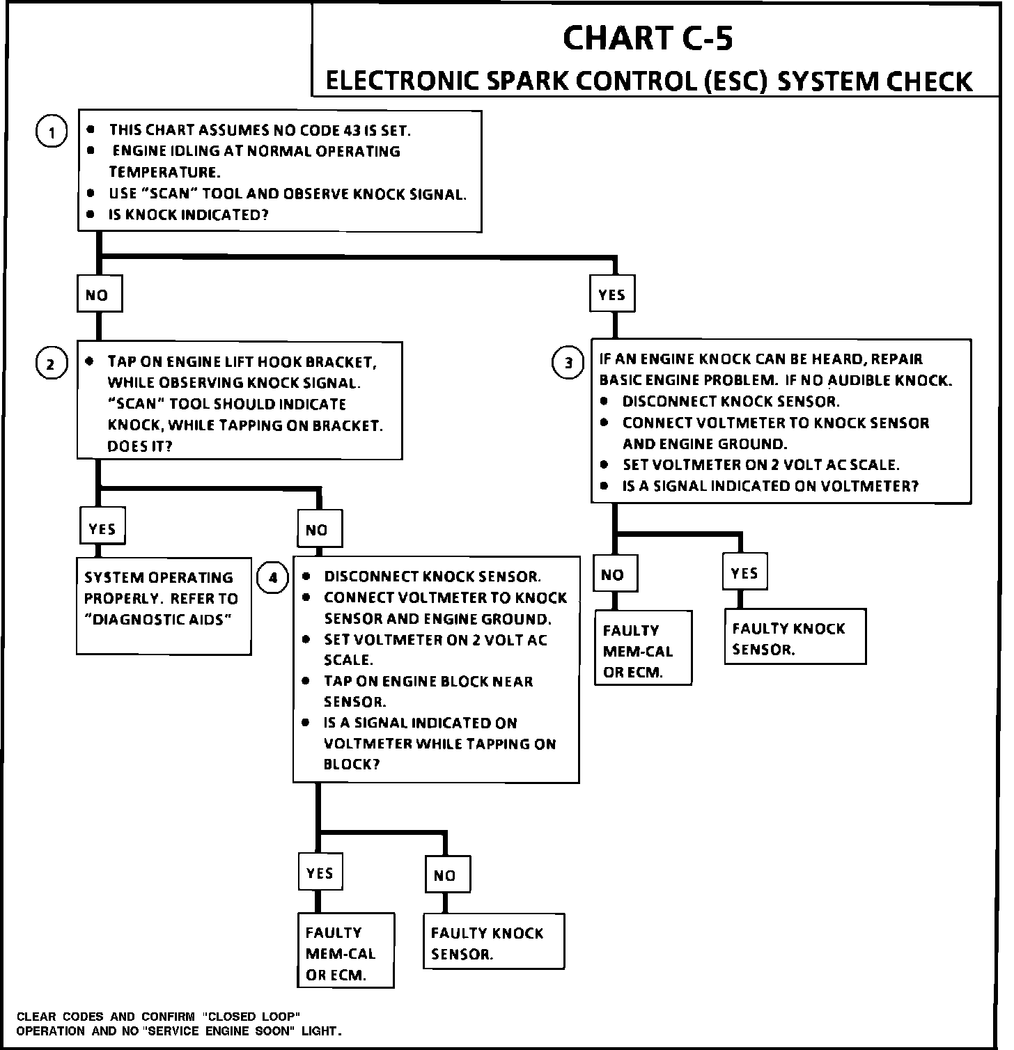 4. This test determines if the knock sensor is faulty or if the ESC portion of the Mem-Cal is faulty. If it is determined that the Mem-Cal is faulty, be sure that it is properly installed and latched into place. If not properly installed, repair and retest.