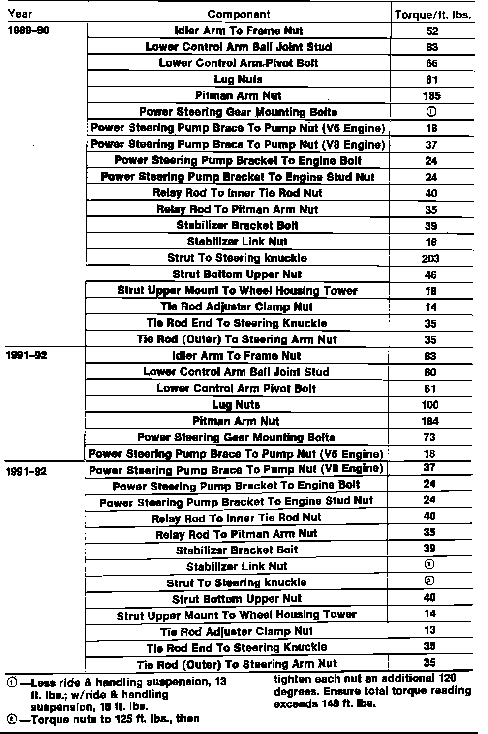 Tightening Specifications: