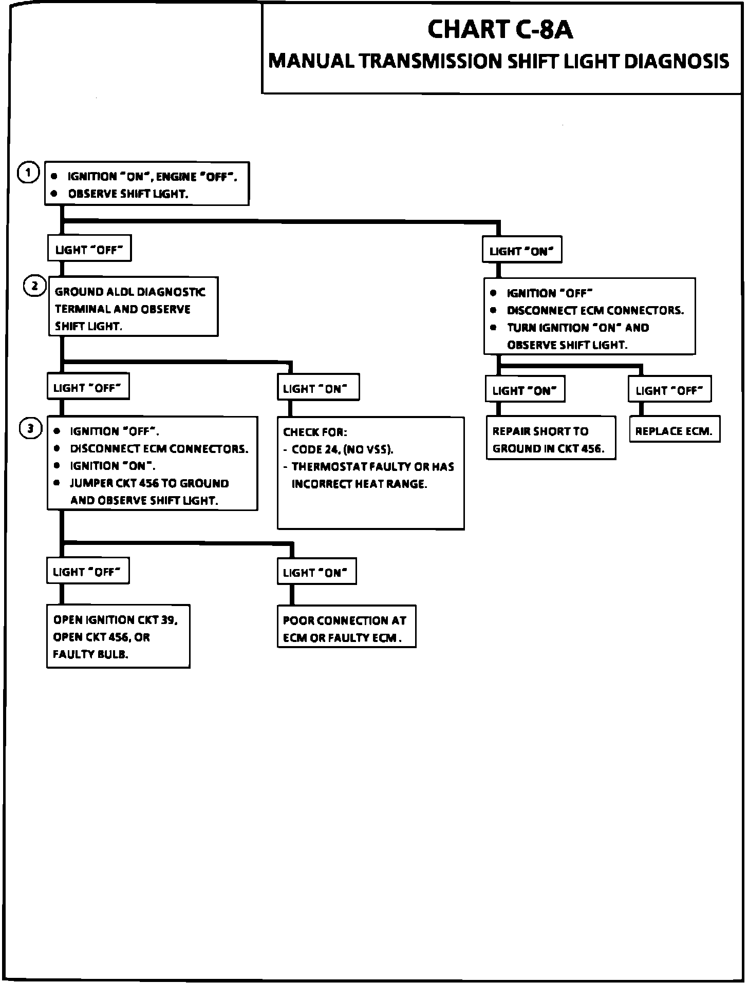 2. When the diagnostic terminal is grounded, the ECM should ground CKT 456 and the shift light should come "ON."