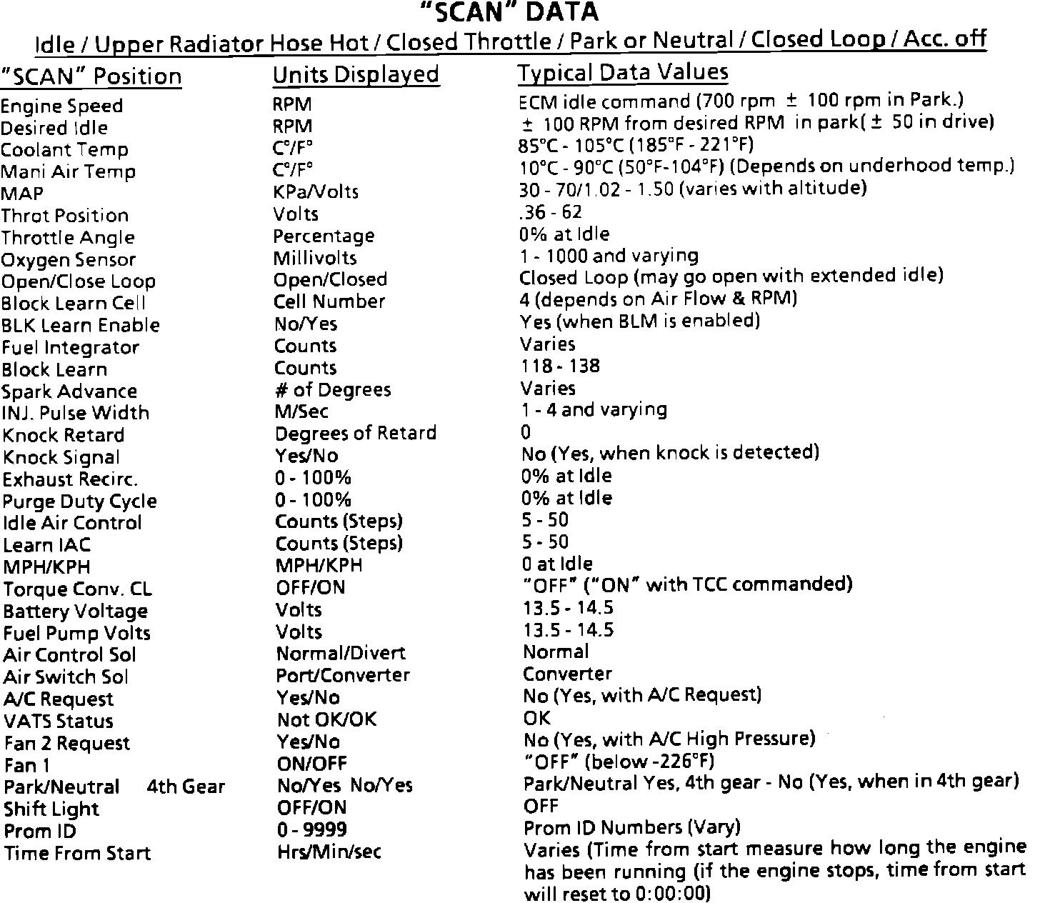 Typical Scan Data Values: