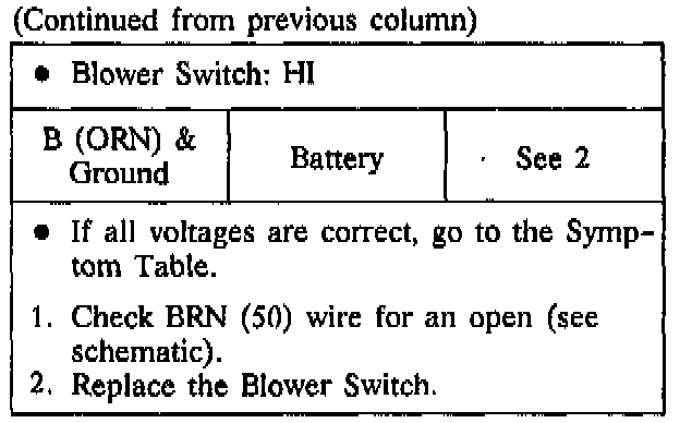A: Blower Switch Test (Cont.'d):