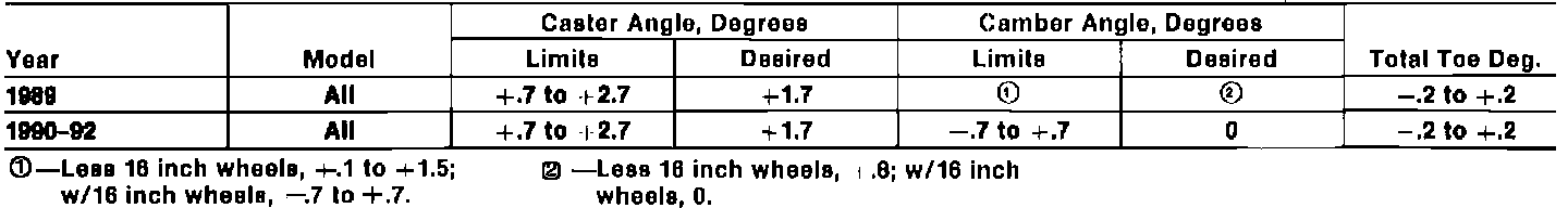 Front Wheel Alignment Specifications: