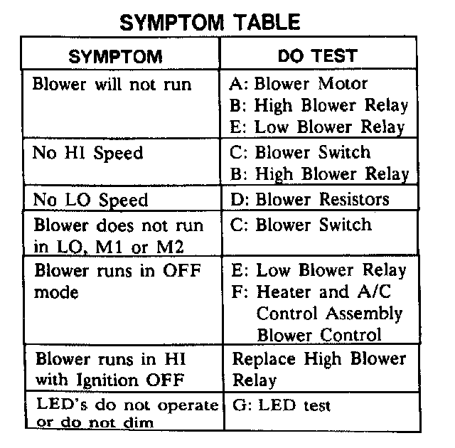 Tests follow the Symptom Table.
